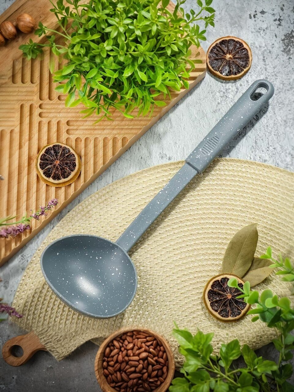 Половник — это универсальный кухонный инструмент, который используется для разливания супов, соусов и других жидких блюд. Он изготовлен из высококачественного нейлона, который обеспечивает безопасность при контакте с любыми поверхностями и продуктами. Благодаря своей мягкости и гибкости половник не царапает посуду и не повреждает её поверхность.