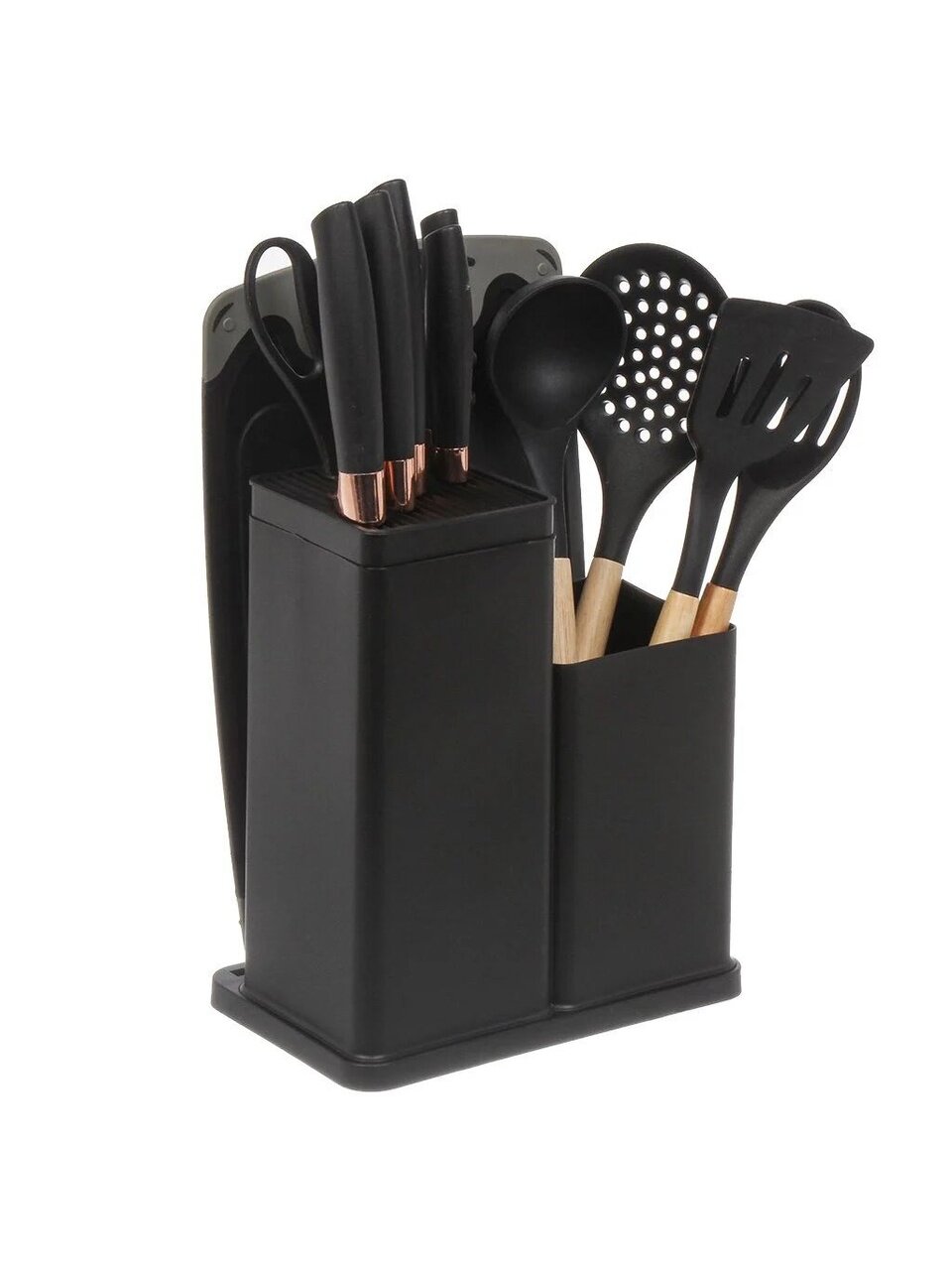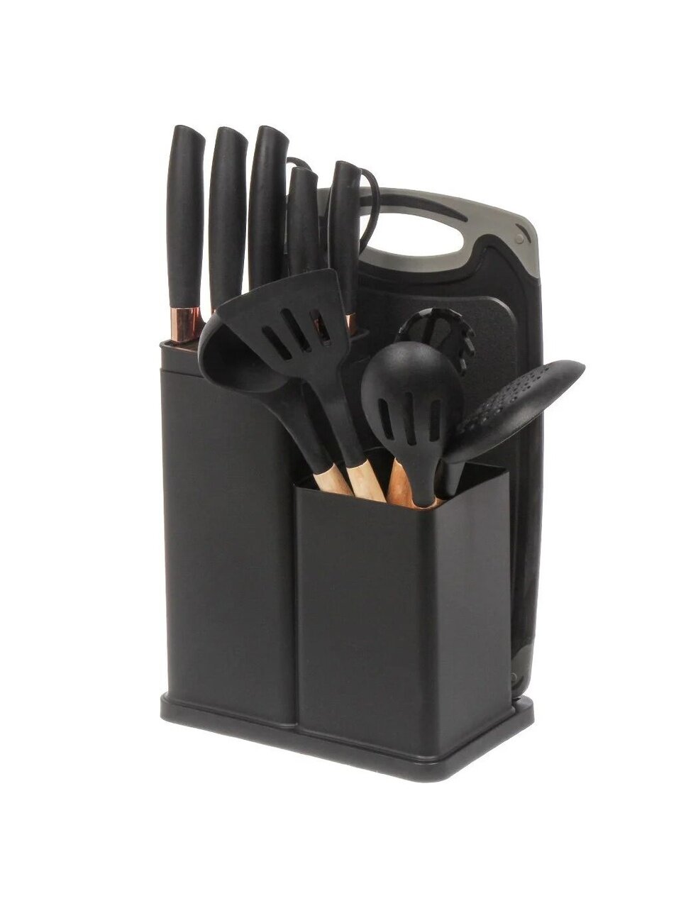 Вы можете приобрести «Набор кухонных принадлежностей 13 предметов, силикон, нержавеющая сталь, на подставке, с доской, серый, B030083» и другие товары в нашем интернет-магазине в Липецке по низким ценам и с бесплатным самовывозом.