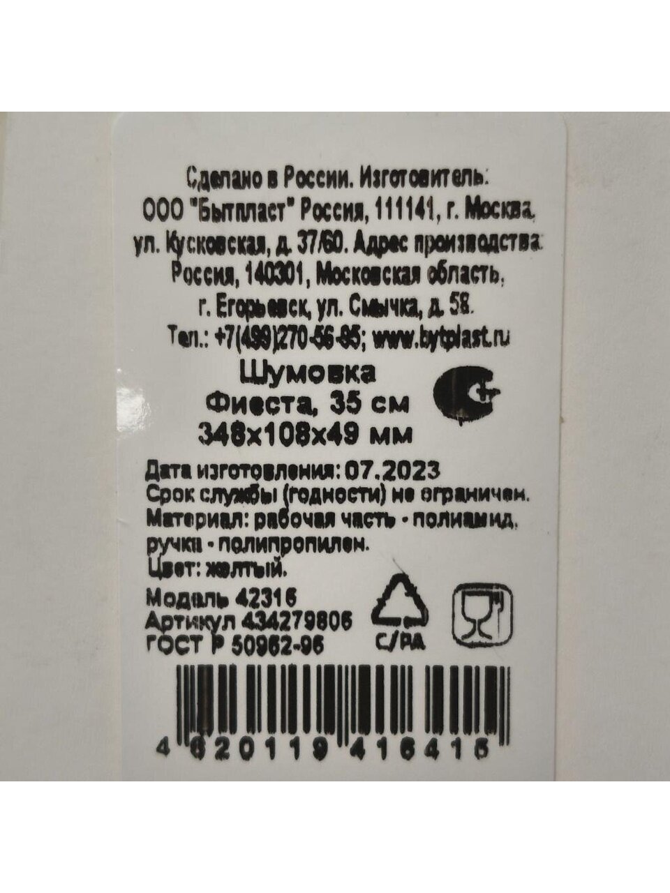 Вы можете приобрести «Шумовка пластик, 35 см, навеска, желтая, Бытпласт, Fiesta, 434279806» и другие товары в нашем интернет-магазине в Иваново по низким ценам и с бесплатным самовывозом.