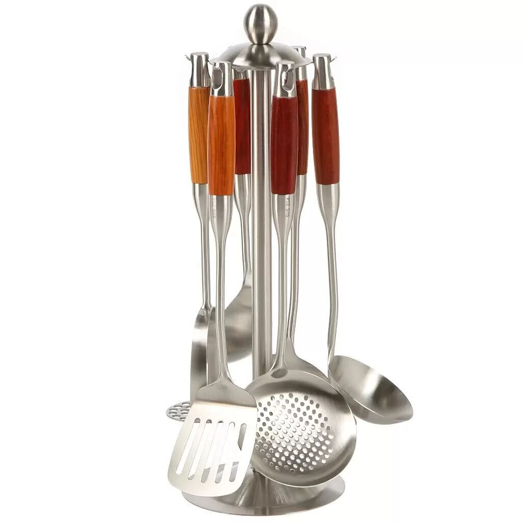Набор кухонных принадлежностей 7 предметов Daniks Premium — идеальное решение для современной кухни, где ценится сочетание функциональности, стиля и надежности. Элегантный дизайн и высокое качество исполнения делают комплект незаменимым помощником для ежедневного приготовления любимых блюд. Коллекция выполнена из прочной стали с ручками из натуральной акации, что придает аксессуарам уникальный внешний вид и обеспечивает долговечность использования. Подставка из стали позволяет удобно разместить все предметы набора и поддерживать порядок на рабочей поверхности.