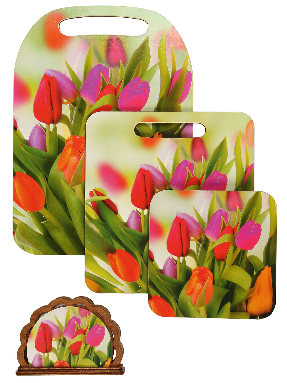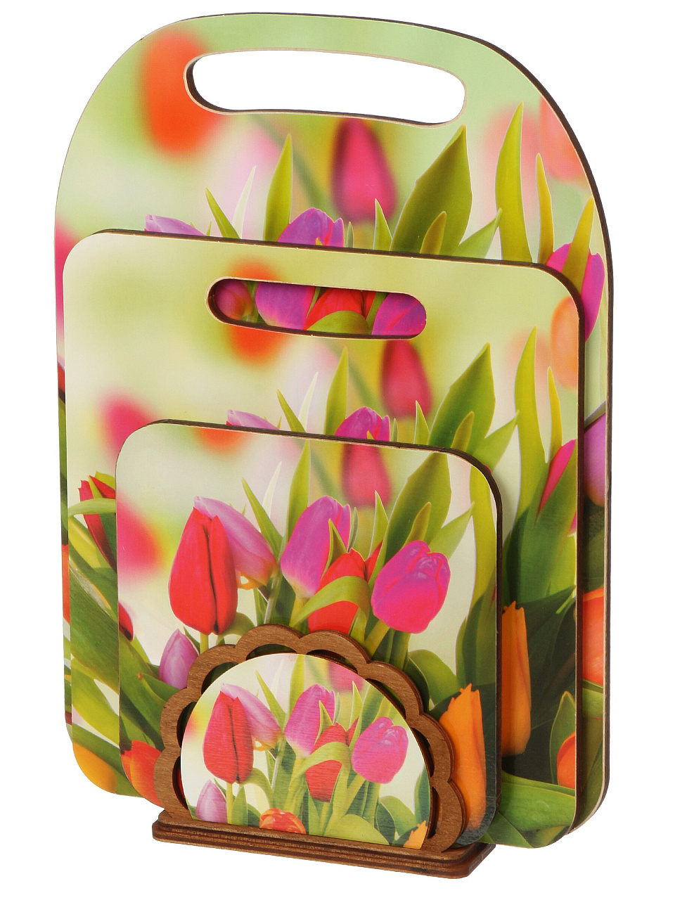 Набор кухонных принадлежностей «Тюльпаны» 4 в 1: стильная навеска, доски и подставка — уют и порядок на кухне без лишних затрат