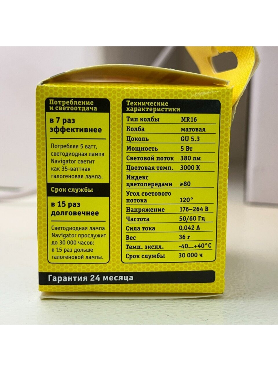 Вы можете приобрести «Лампа светодиодная GU5.3, 5 Вт, 35 Вт, 220 В, рефлектор, 3000 К, теплый белый свет, Navigator, 94263» и другие товары в нашем интернет-магазине в Таганроге по низким ценам и с бесплатным самовывозом.