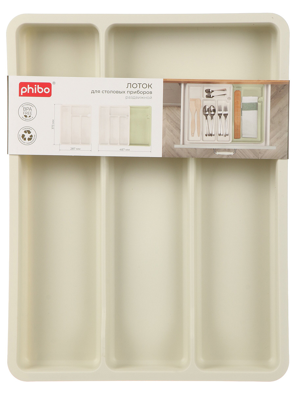 Какой размер у раздвижного лотка для столовых приборов Бытпласт Phibo?