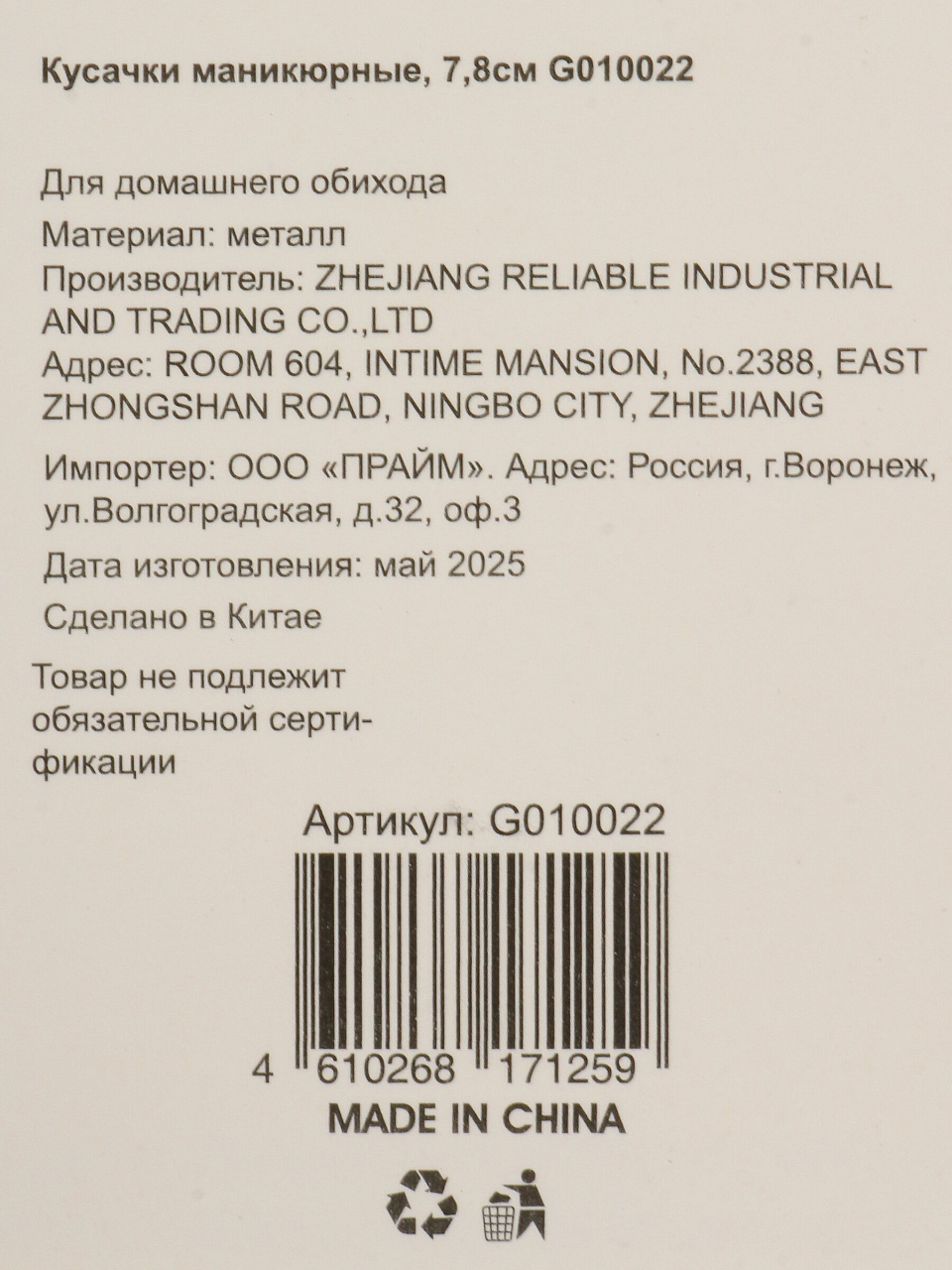 Кусачки маникюрные нерж сталь, 7.8 см, G010022