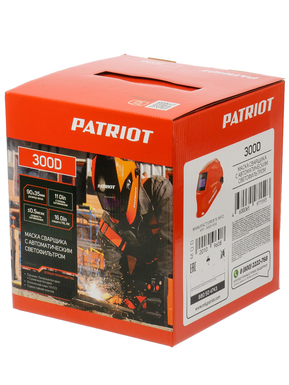 Маска сварочная хамелеон Patriot 300D — автозатемнение 4-11 DIN, надёжная защита глаз для сварки на даче и в гараже по выгодной цене.