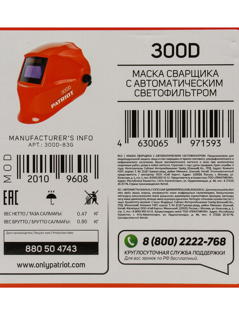 Вы можете приобрести «Маска сварочная хамелеон, Patriot, 300D, 4-11 DIN, полипропилен, 90х35 мм» и другие товары в нашем интернет-магазине в Краснодаре по низким ценам и с бесплатным самовывозом.