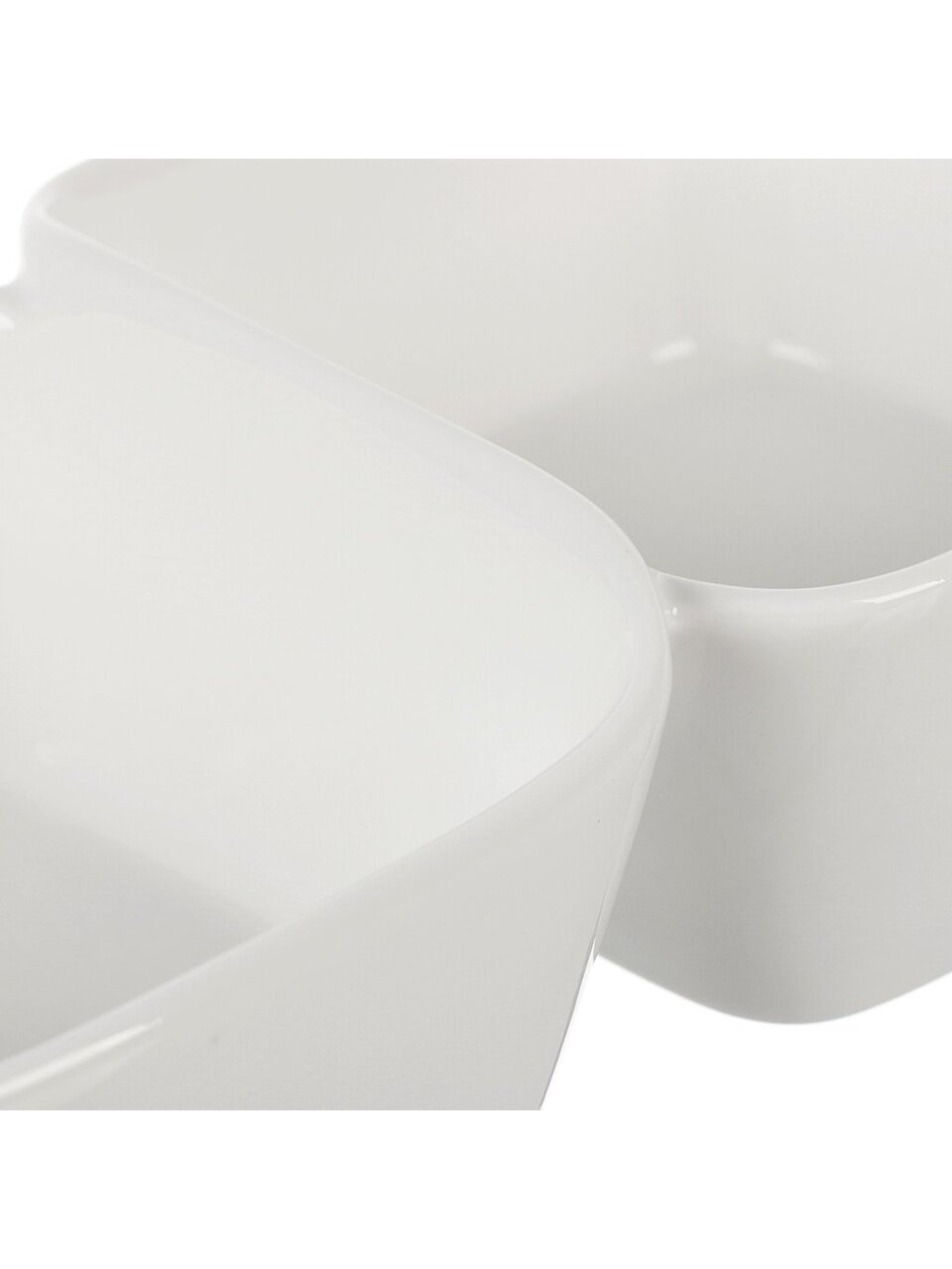 Менажница из фарфора состоит из двух секций. Подходит для сервировки орехов, закусок, оливок и сладостей. Благодаря необычному дизайну украсит любой стол. Посуда важный предмет в приготовлении и подаче блюд. Приготовленная еда выглядит аппетитней и привлекательней если подать ее на красивой посуде.