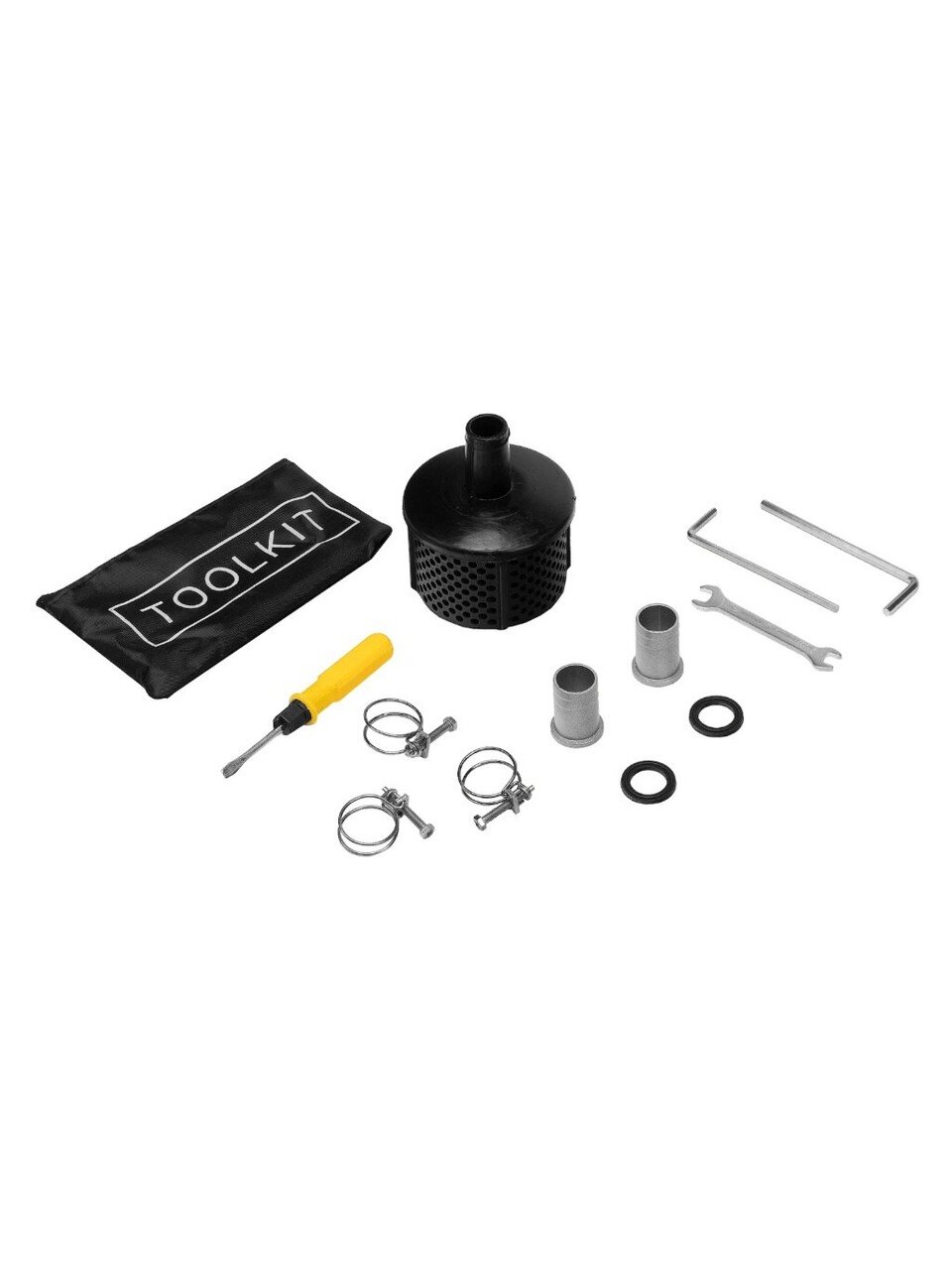 - Усиленная стальная рама с широким основанием защищает мотопомпу от повреждений и обеспечивает её устойчивость во время работы.