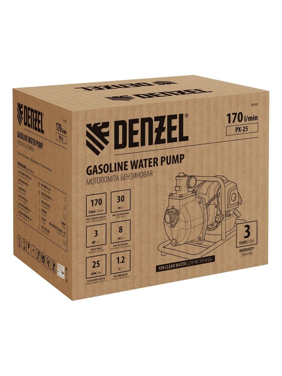Вы можете приобрести «Мотопомпа бензиновая Denzel, 1 '', глубина погружения 8 м, максимальный напор 30 м, 10.2 м³/ч, 3 л.с., 170 л/мин, PX-25» и другие товары в нашем интернет-магазине в Иваново по низким ценам и с бесплатным самовывозом.