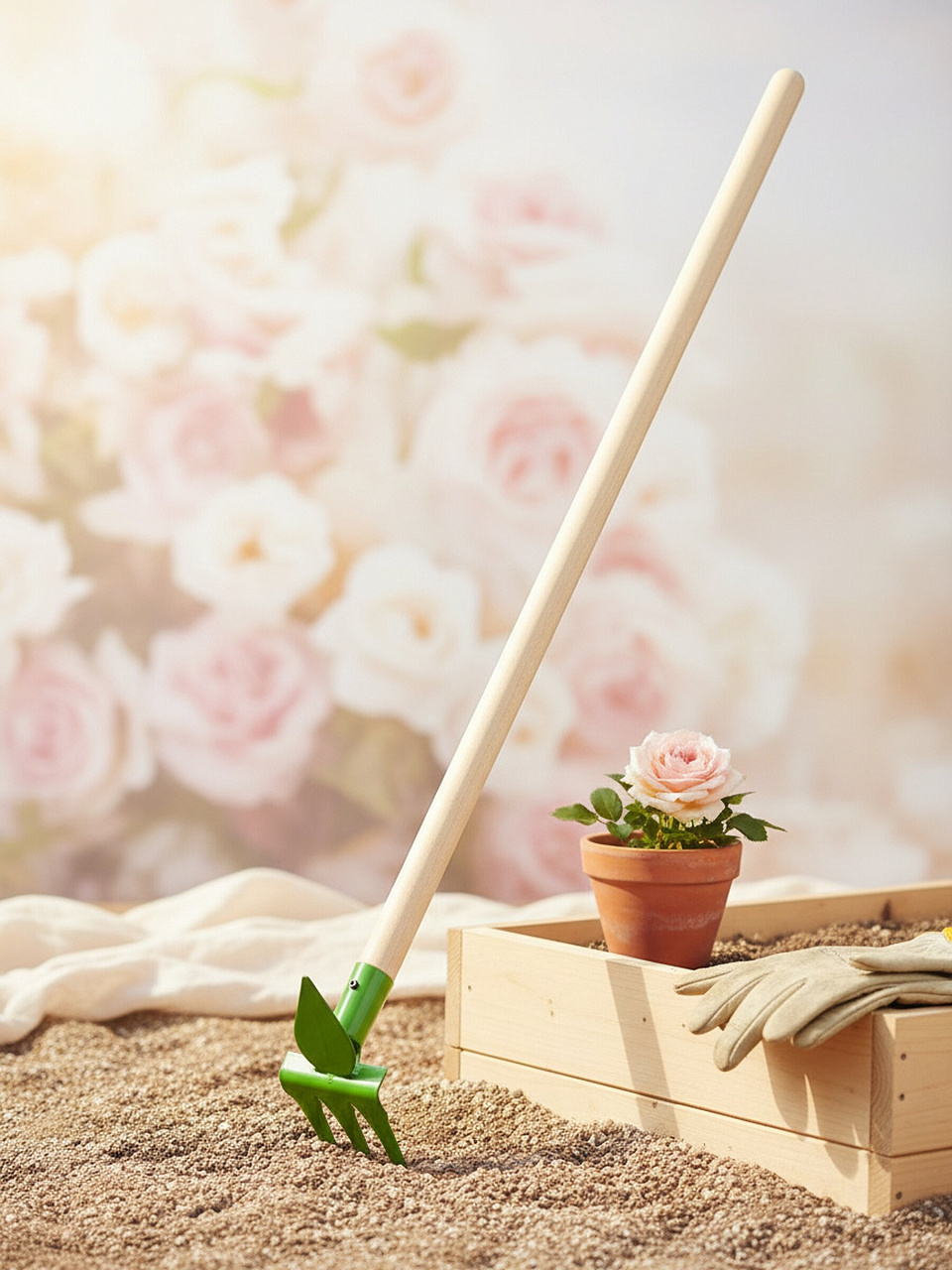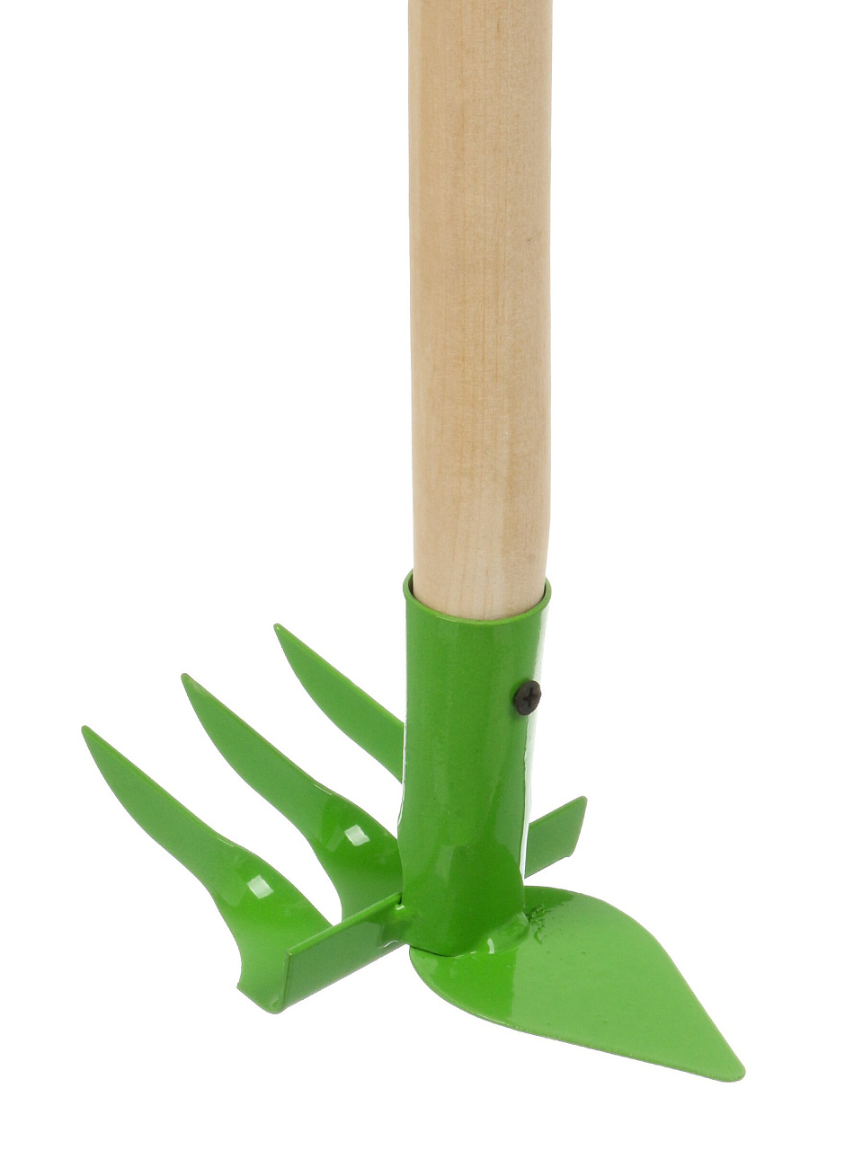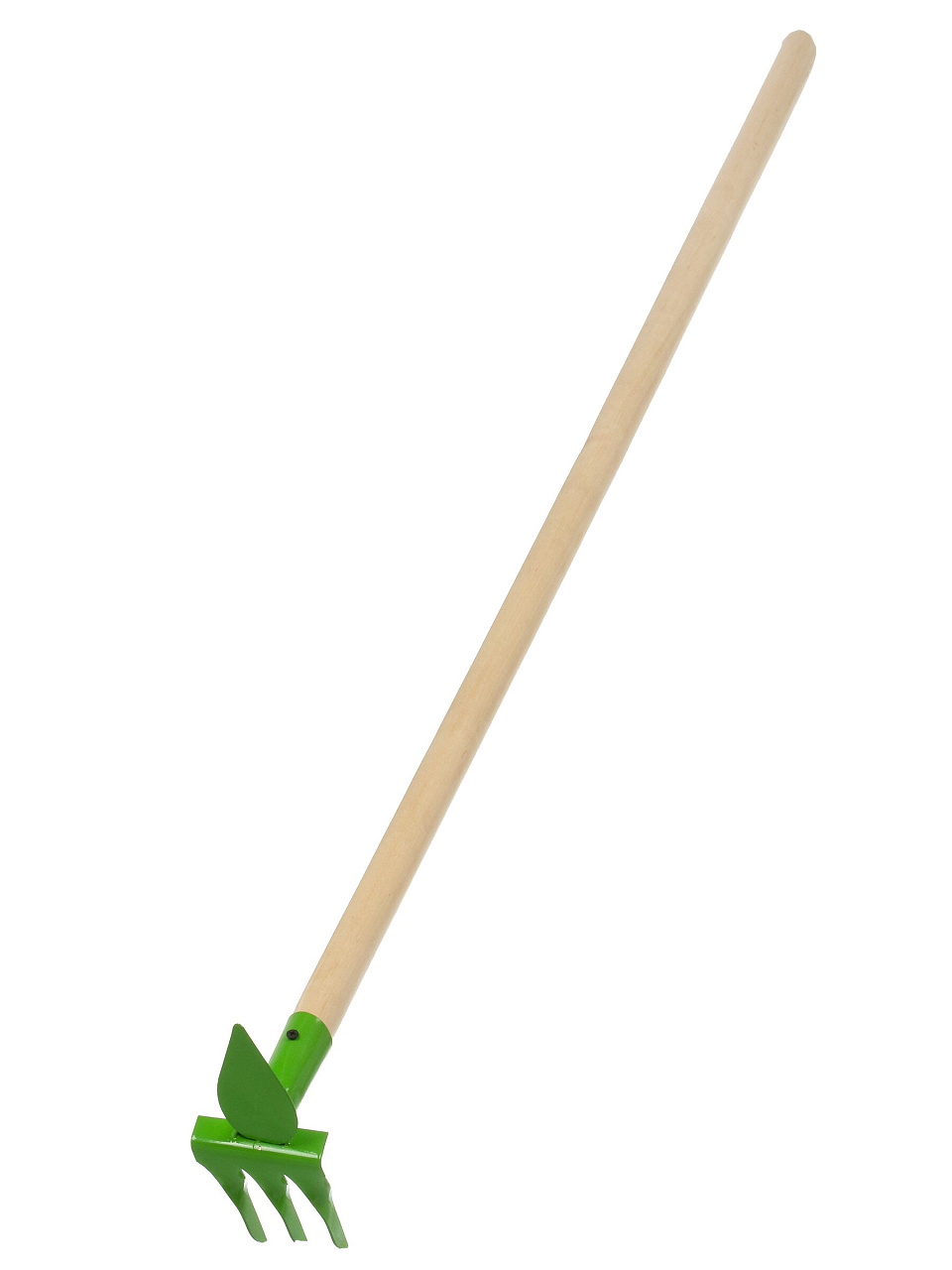 В этой модели совмещены функции мотыг и граблей: одна сторона — для рыхления, другая — для сбора мусора и выравнивания почвы, что делает её универсальной для разных задач.