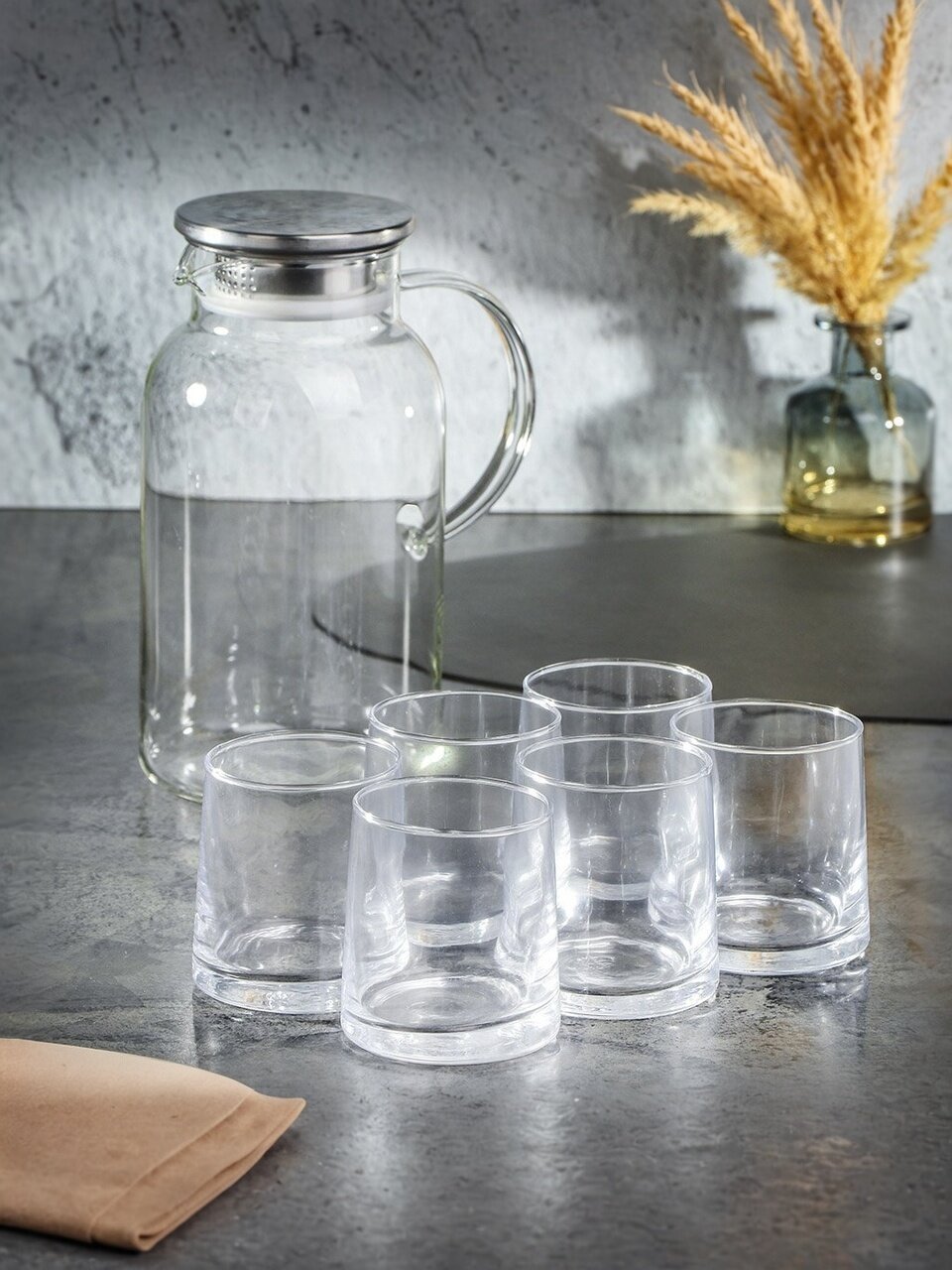 Вы можете приобрести «Набор для горячих и холодных напитков боросиликатное стекло, 7 предметов, кувшин 1.8 л, 6 стаканов 240 мл, Кристальная дымка, B050172» и другие товары в нашем интернет-магазине в Астрахани по низким ценам и с бесплатным самовывозом.