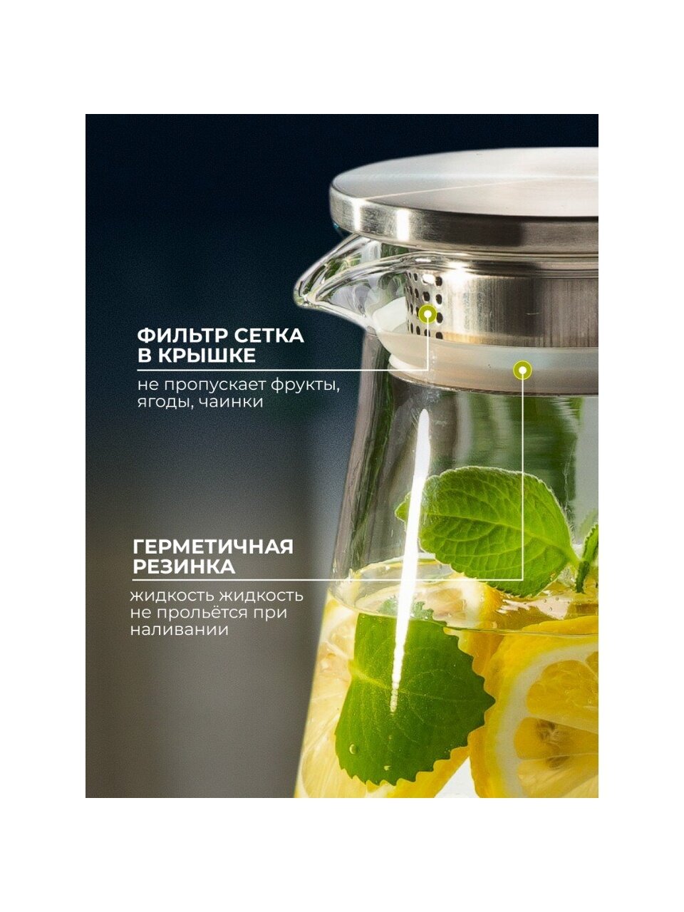- вместительный кувшин: объем 1.8 литра позволяет приготовить напитки для большой компании, не беспокоясь о частом пополнении;