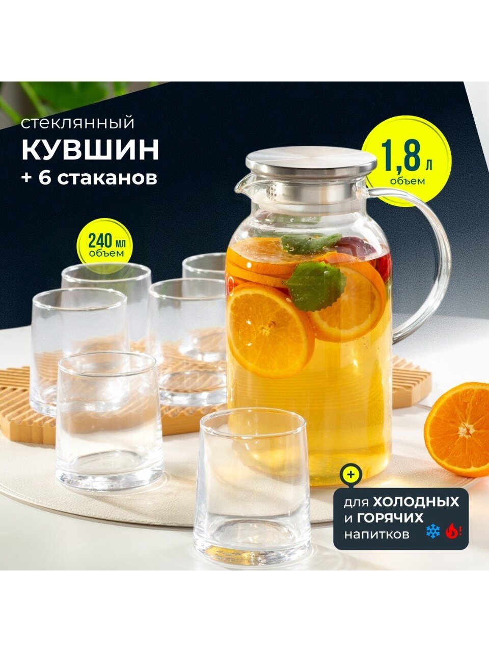 - удобные стаканы: шесть стаканов объемом 240 мл идеально подходят для сервировки напитков, обеспечивая комфортное использование;