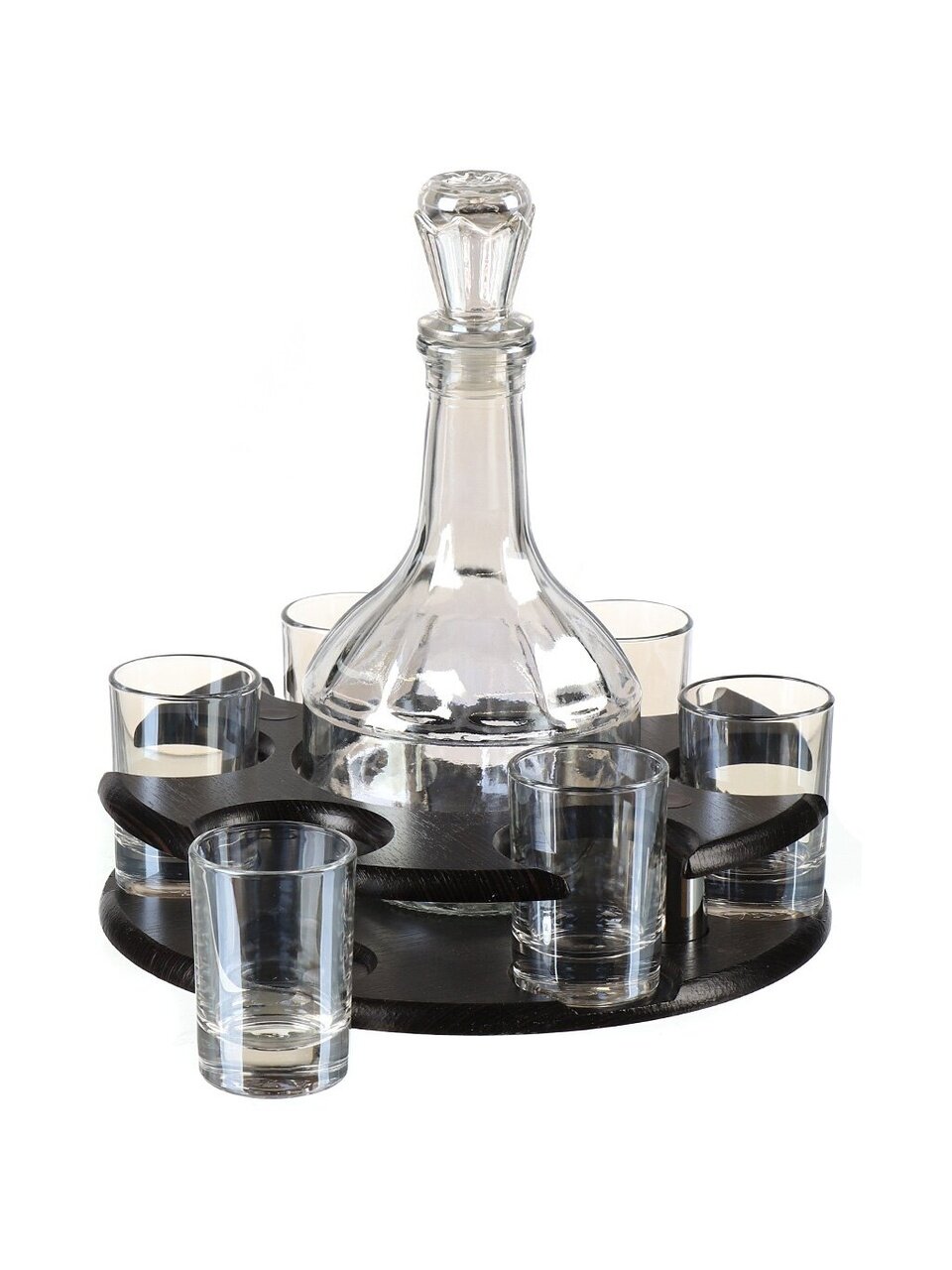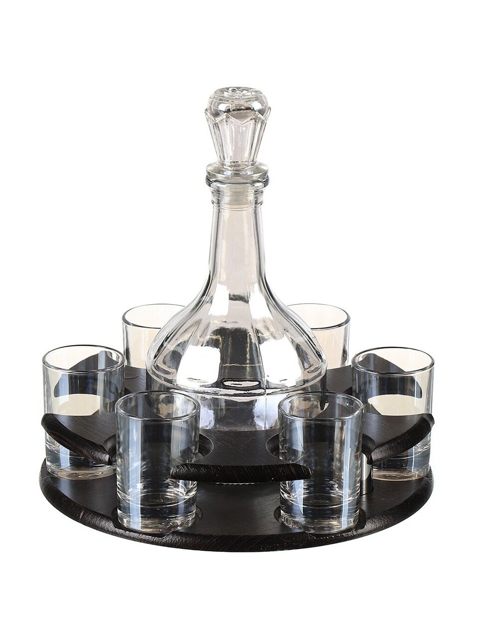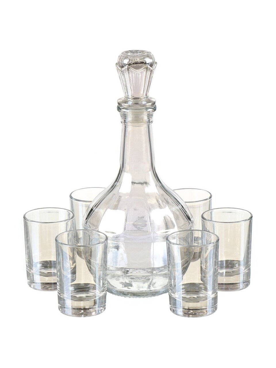 Набор включает в себя графин объемом 500 мл и шесть стопок по 50 мл, выполненные из прозрачного стекла. Прозрачный цвет позволяет напиткам выглядеть особенно привлекательно, а элегантные формы подчеркивают их благородство. Это не просто посуда, а настоящий элемент декора, который украсит любой интерьер.