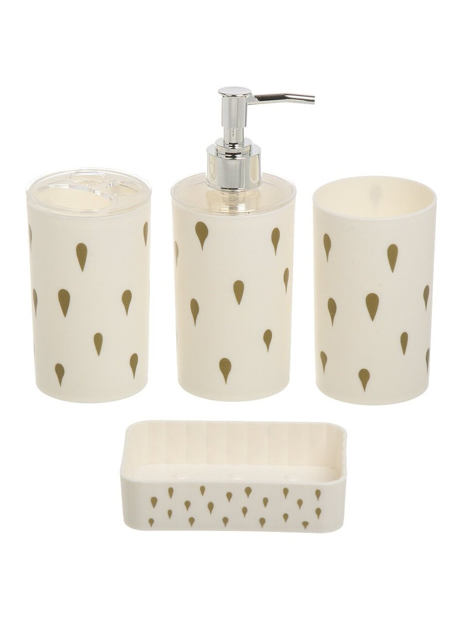Вы можете приобрести «Набор для ванной 4 предмета, Капли, белый, пластик, стакан, подставка для зубных щеток, дозатор для мыла, A350051» и другие товары в нашем интернет-магазине в Смоленске по низким ценам и с бесплатным самовывозом.