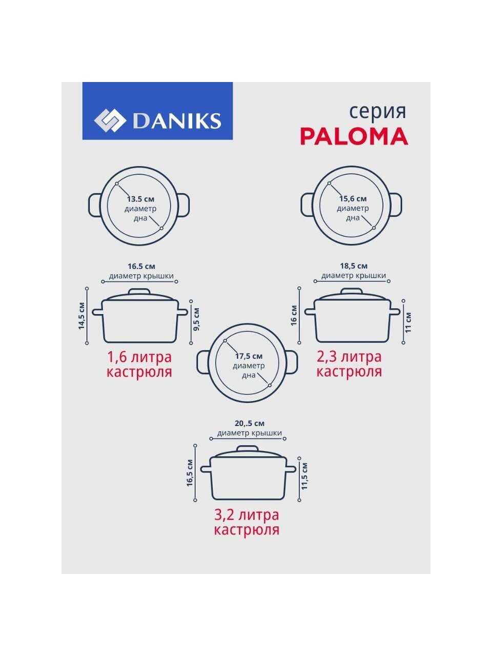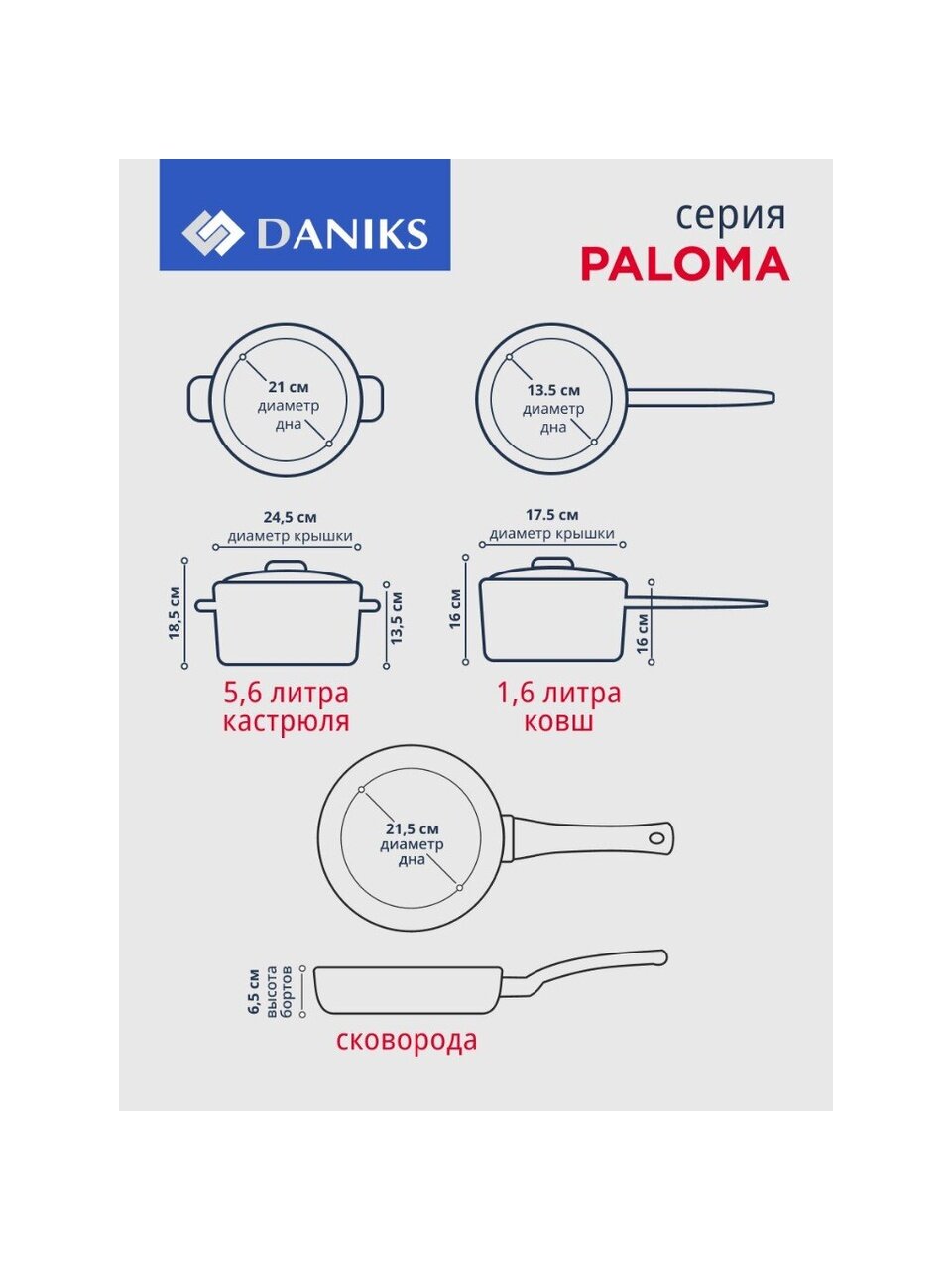 Закажите набор посуды Daniks Paloma сейчас — получите универсальный комплект с гарантией производителя и быстрой доставкой. Проверьте наличие акций и скидок — выгодное предложение для вашей кухни.