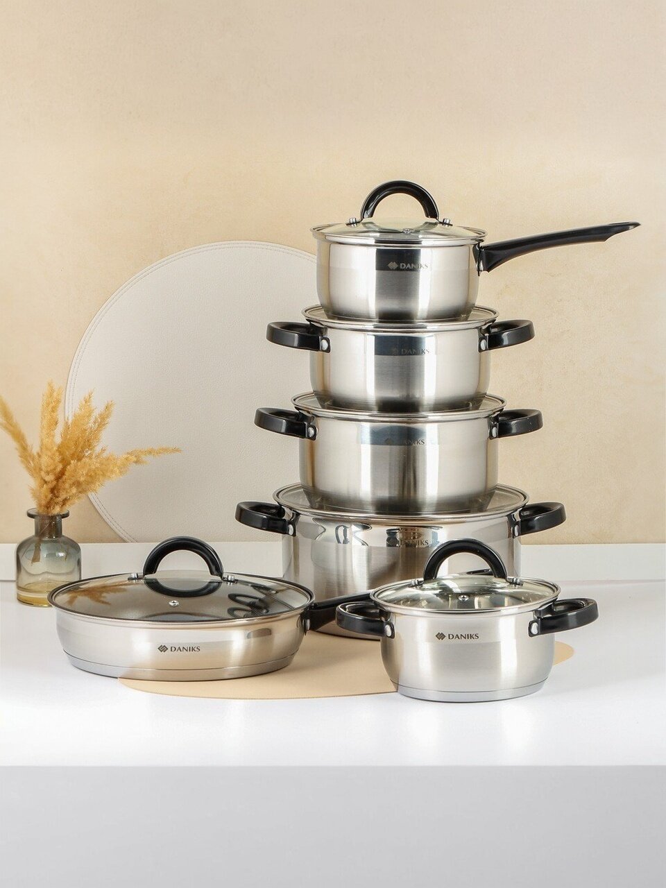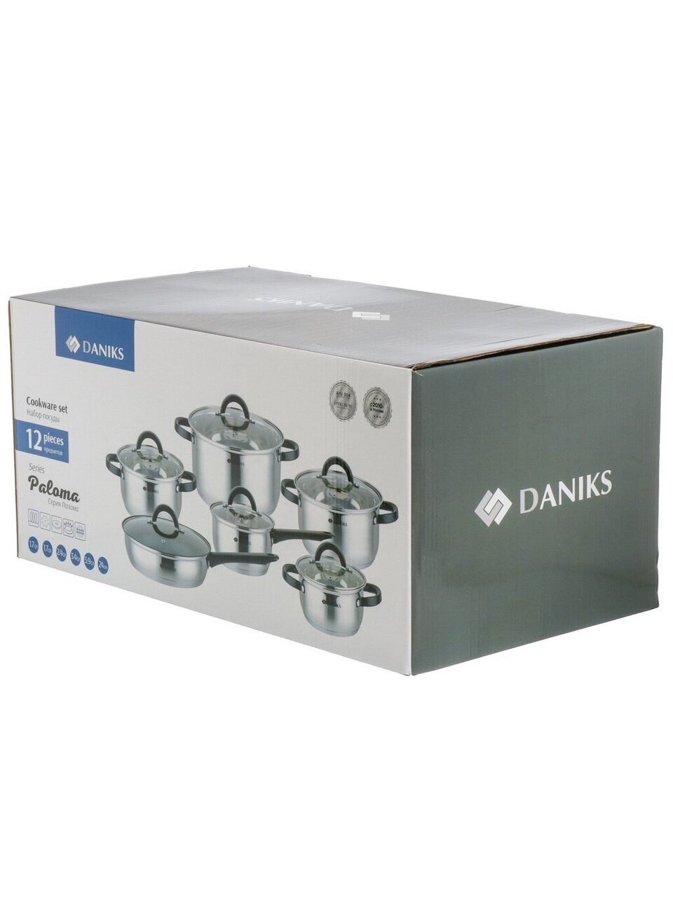 Набор посуды Daniks Paloma из 12 предметов для индукции: универсальное решение для кухни, дачи и подарка. Оптимальные объёмы, долговечная сталь, выгодная цена.