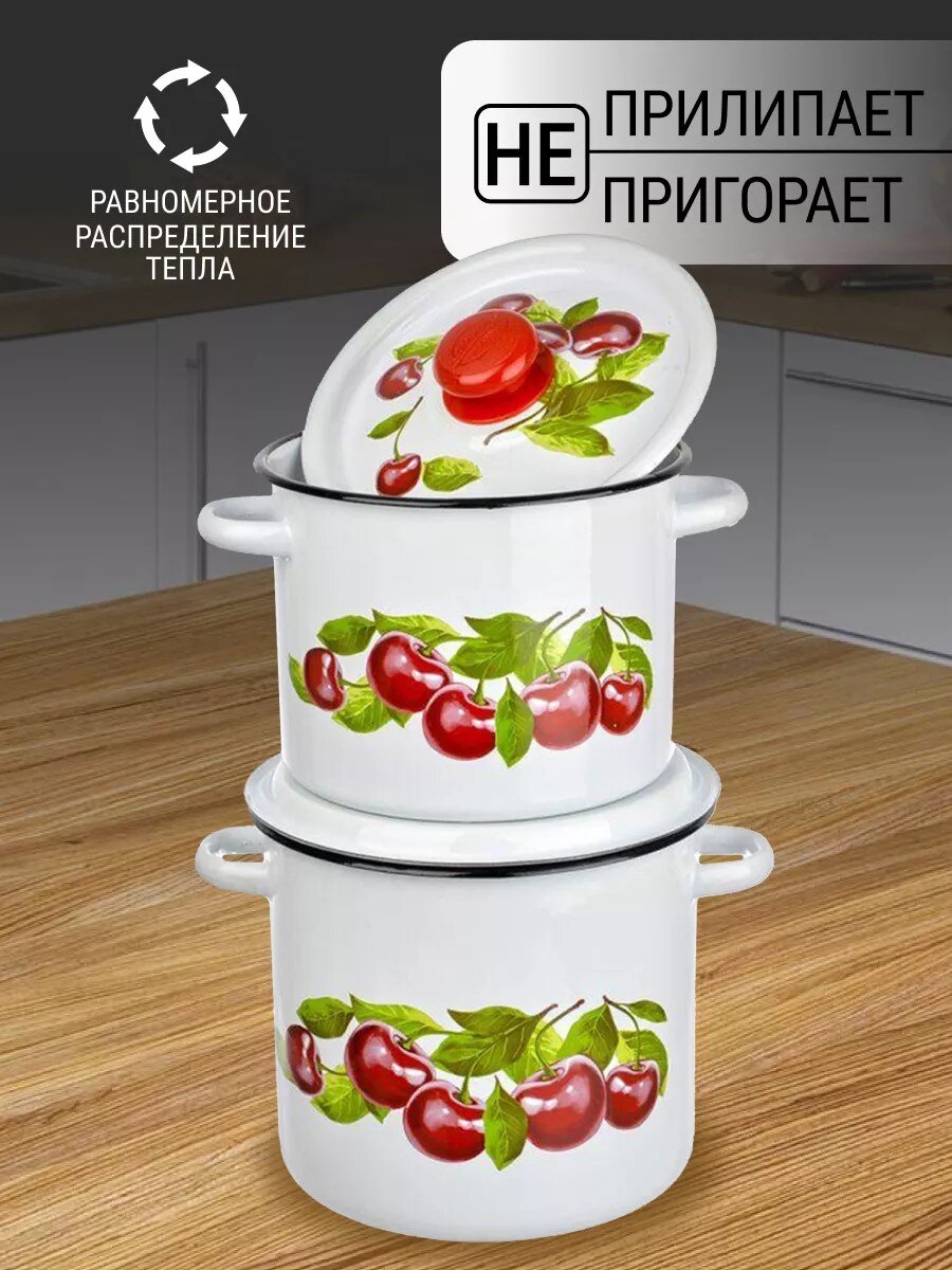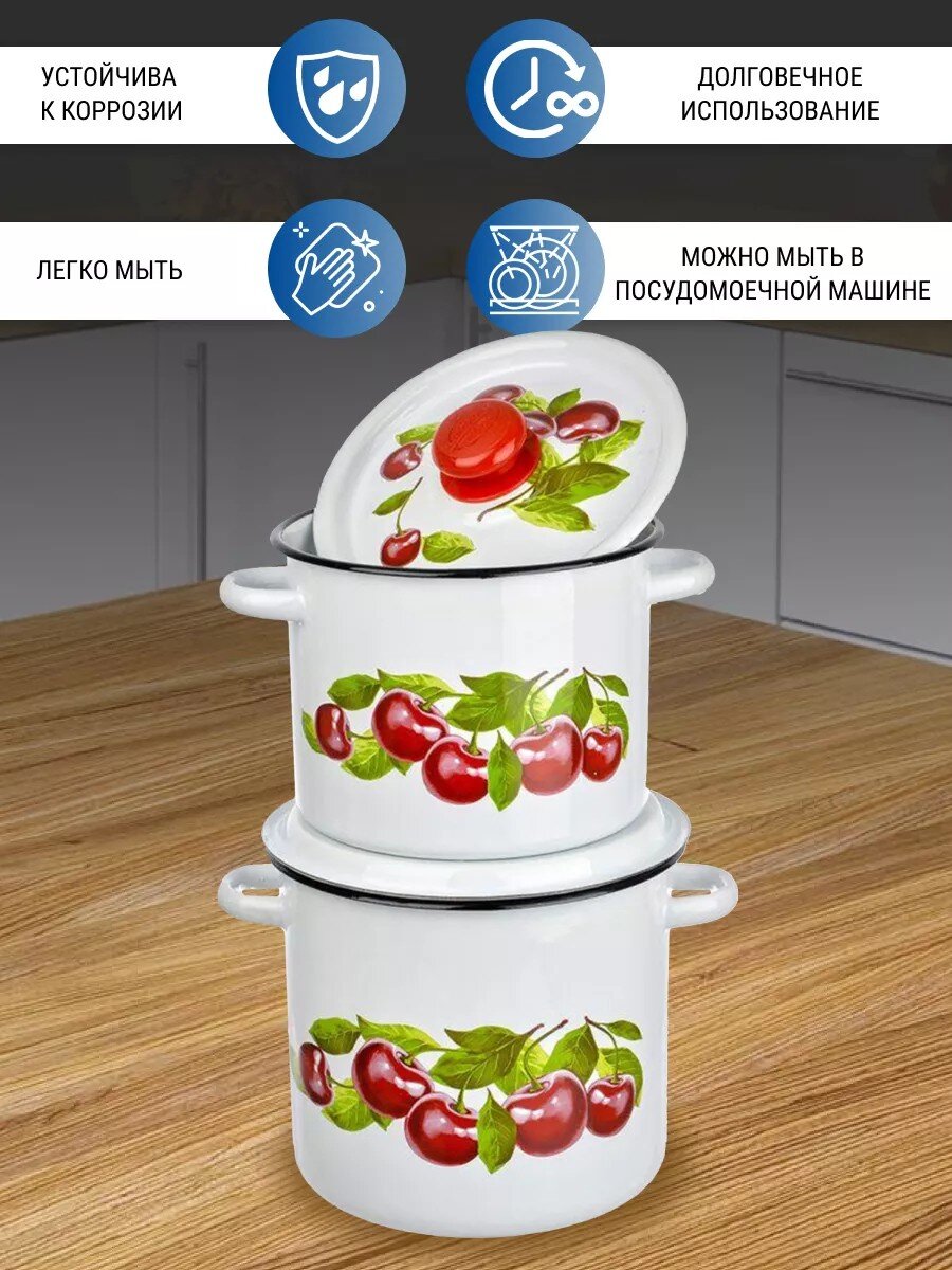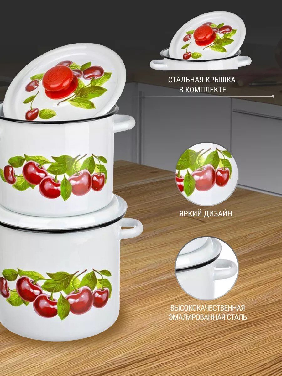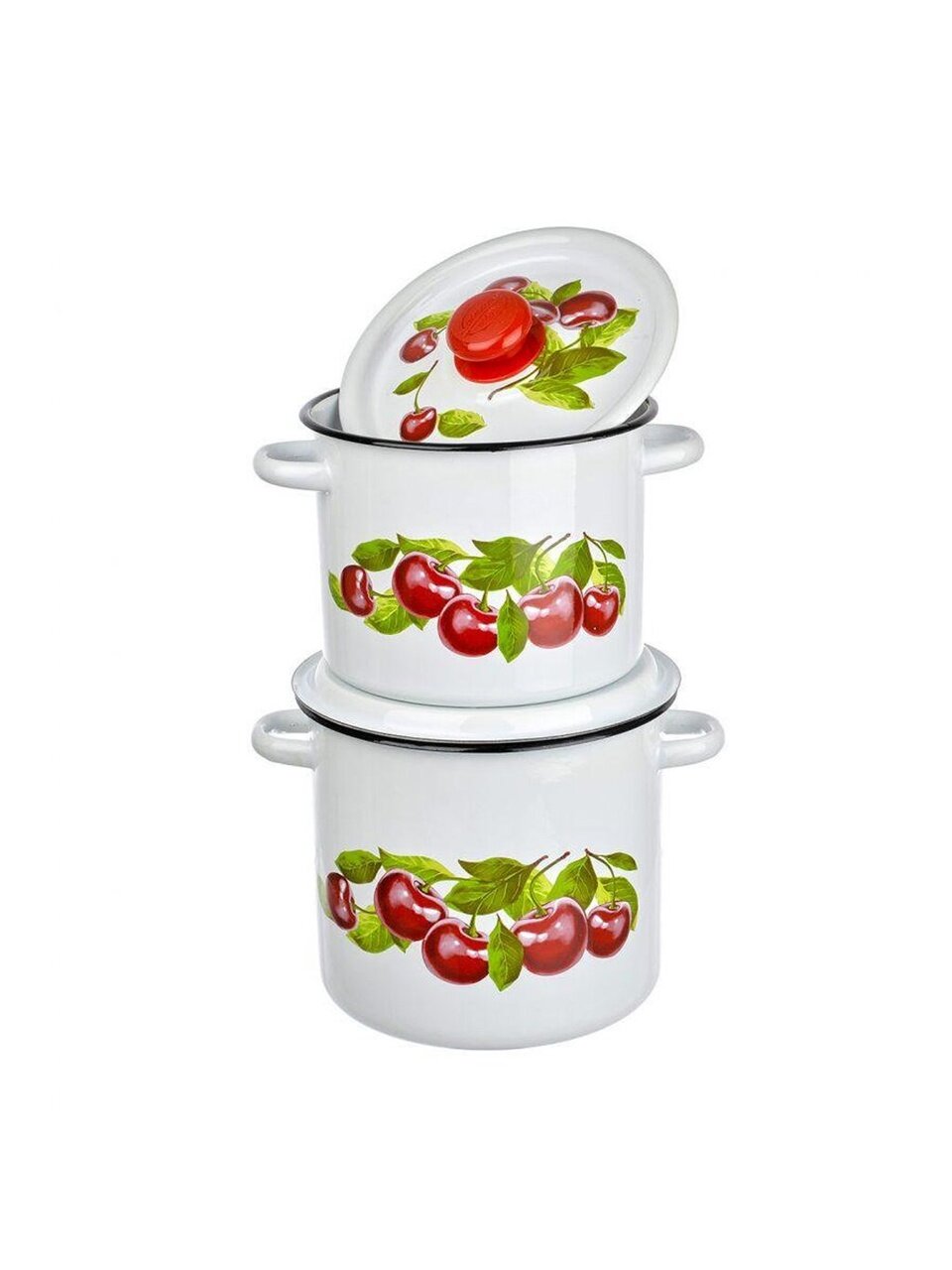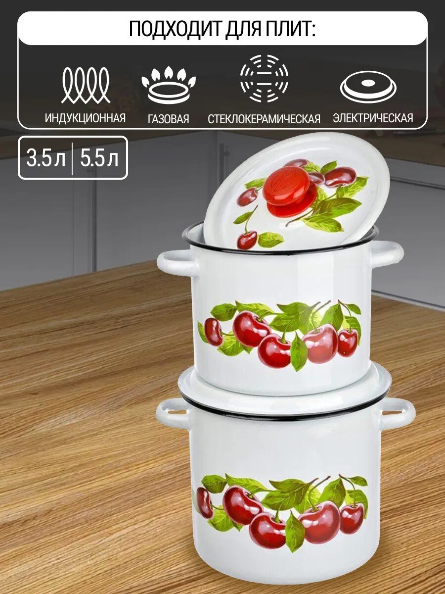 Набор эмалированной посуды 4 предмета Сибирские товары Вишневый сад: оптимальный выбор для кухни и дачи — кастрюли 3.5 и 5.5 л по выгодной цене.
