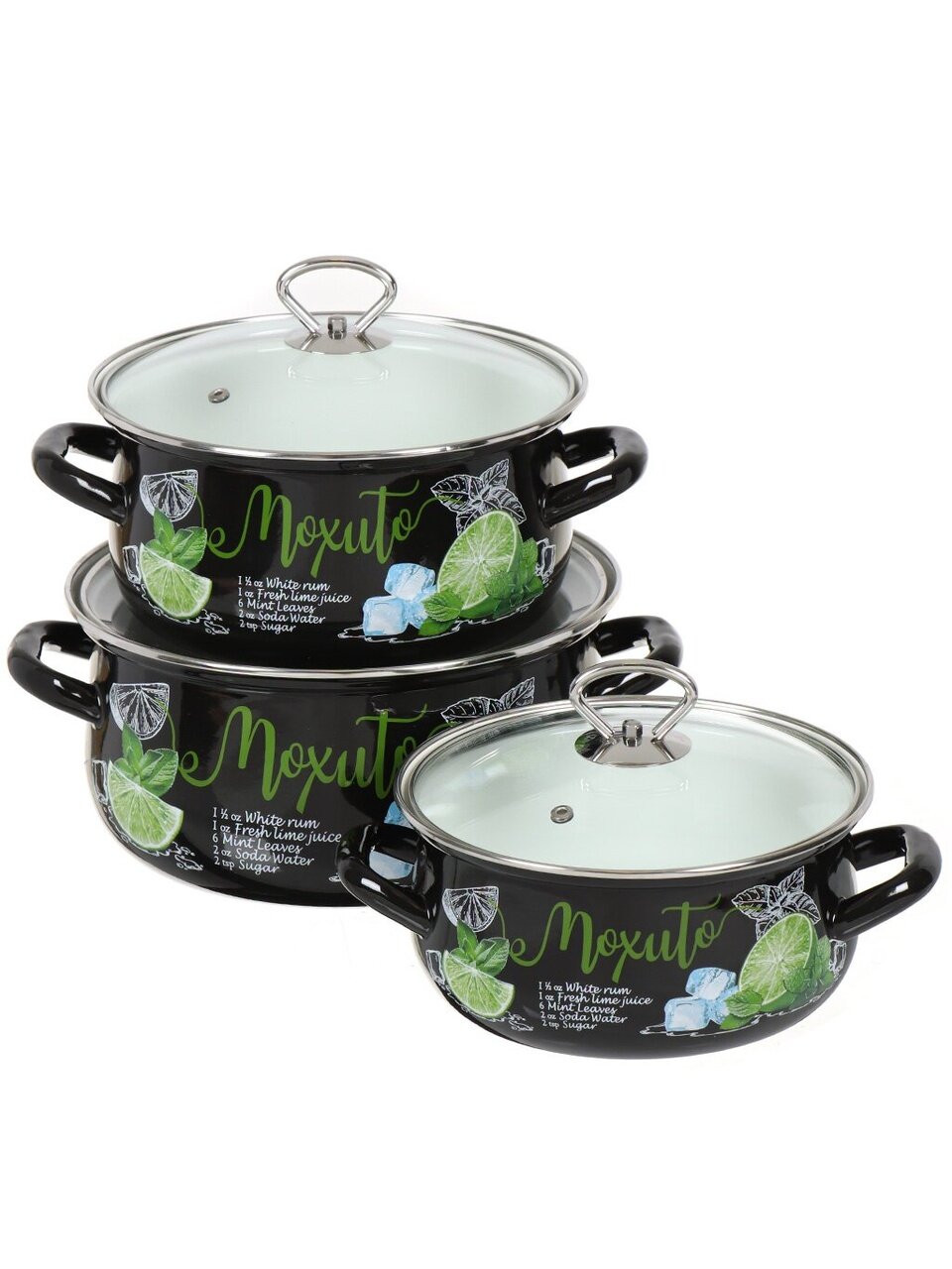 Набор эмалированной посуды 6 предметов Мохито-1 Экстра Стиль — универсальное решение для кухни: 3 объёма, долговечная сталь, стильный черный дизайн