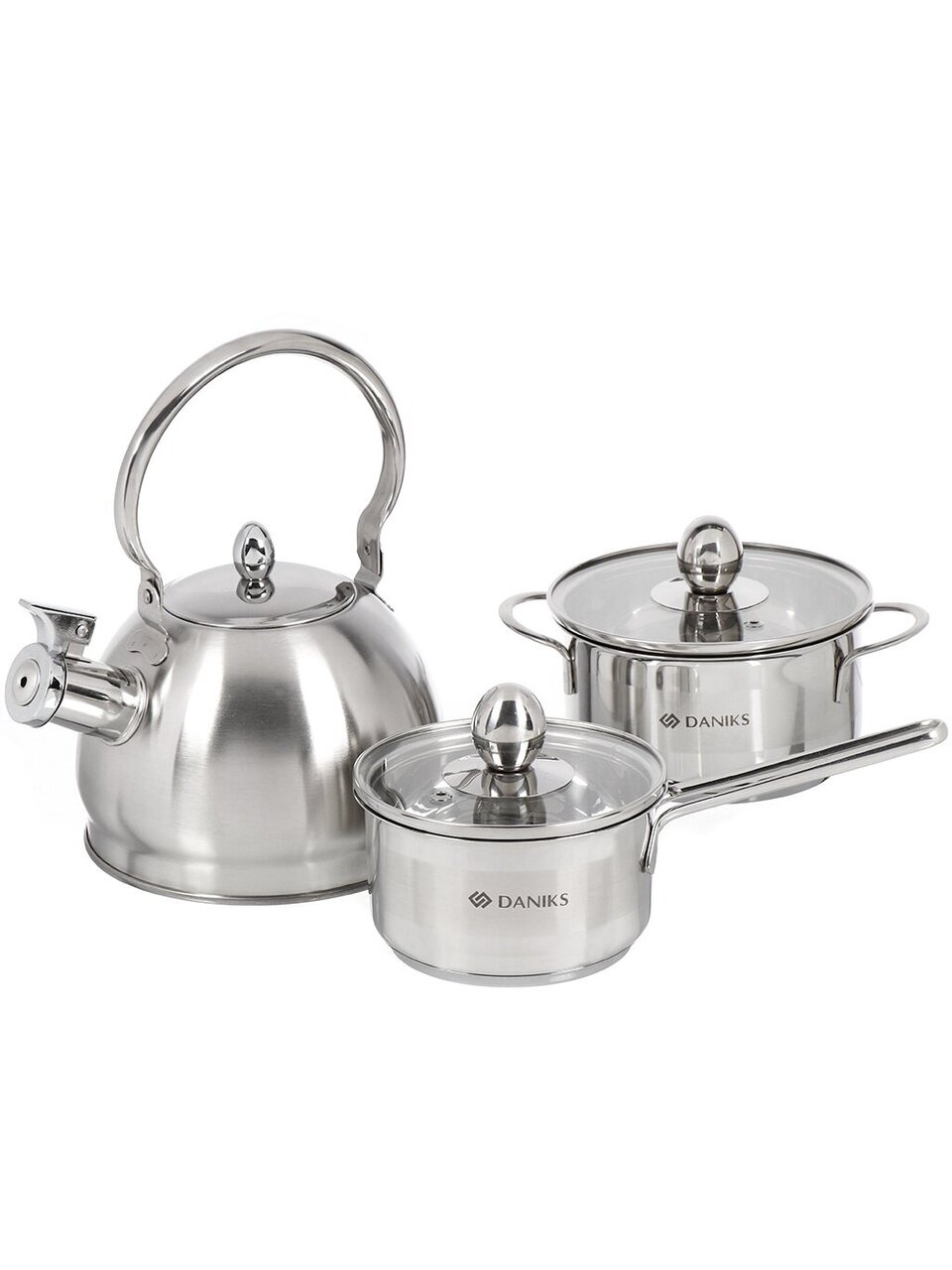 Набор посуды из нержавеющей стали Daniks: 5 предметов для индукционных плит, чайник 2 л — универсальное решение для кухни, дачи и подарка.