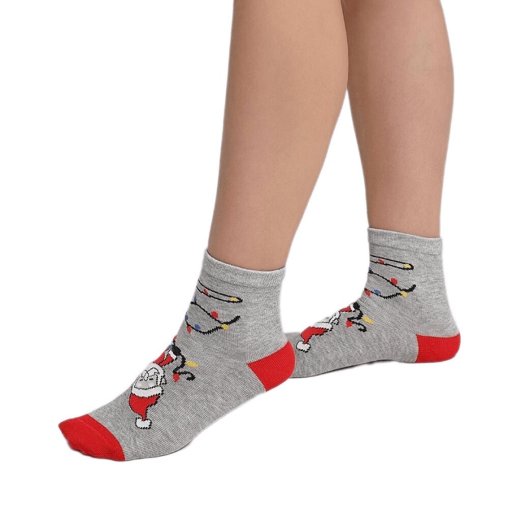 - Носки украшены яркими и красочными изображениями новогодних персонажей, которые создают атмосферу праздника и веселья.