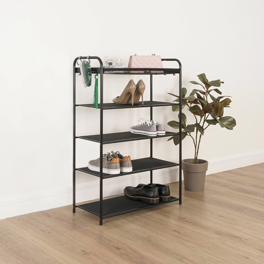 - Четыре полки вместят до 12 пар обуви, а продуманные расстояния между ними позволят разместить как летнюю, так и зимнюю обувь.