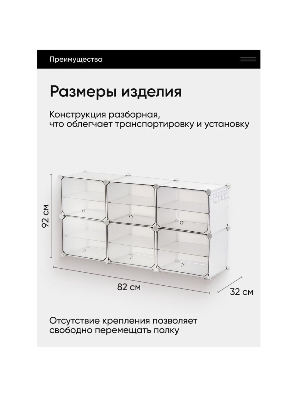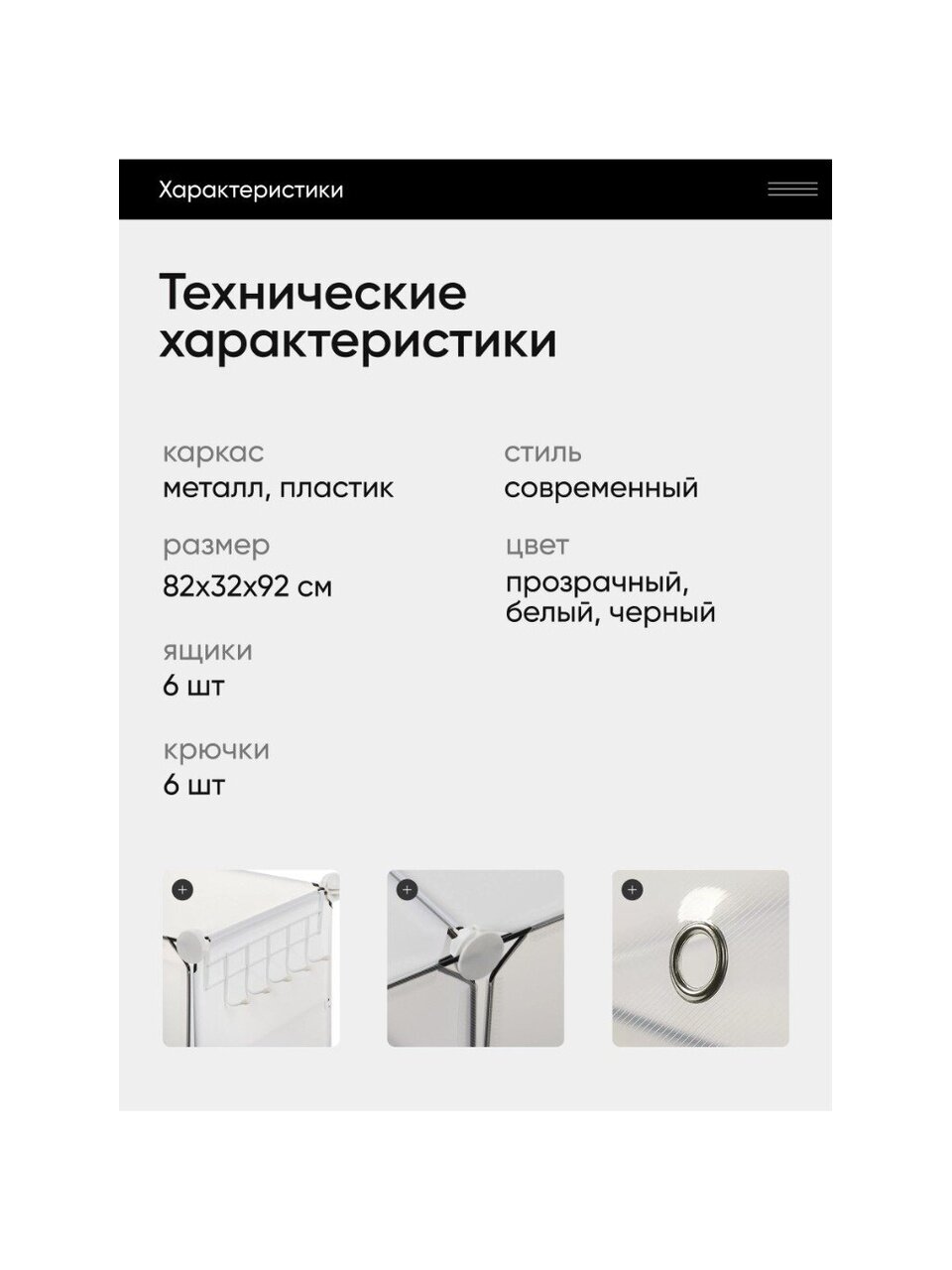 - Шесть ящиков и шесть крючков: обеспечивают много места для хранения обуви и аксессуаров.