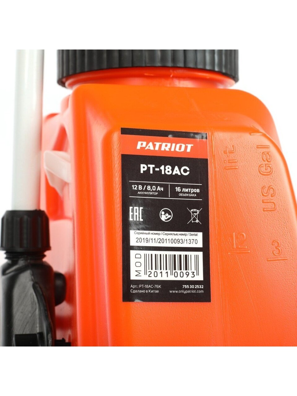 Вы можете приобрести «Опрыскиватель садовый аккумуляторный, Patriot, 16 л, свинцово-кислотный, 8 А.ч, 12 В, ранцевый, телескопическая штанга, PT-18AC, 755302532» и другие товары в нашем интернет-магазине в Санкт-Петербургe по низким ценам и с бесплатным самовывозом.