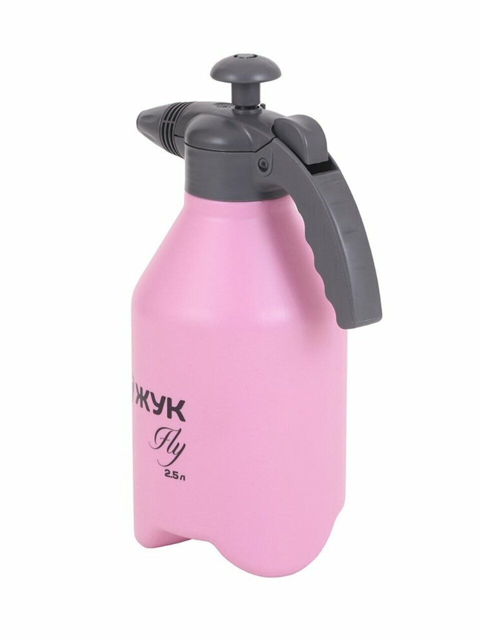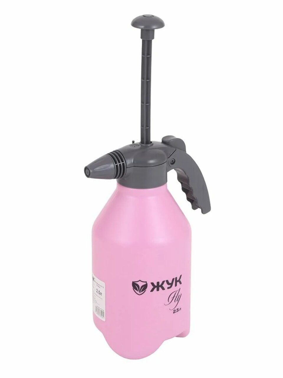 Ручной опрыскиватель Жук Fly 2,5 л — лёгкое решение для ухода за садом и комнатными растениями, экономия времени и воды, стильный розовый дизайн.
