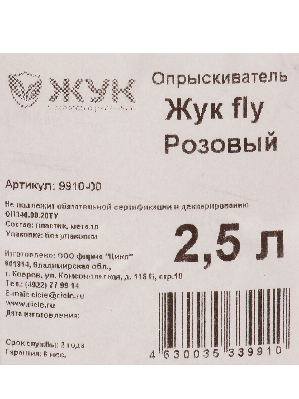 Вы можете приобрести «Опрыскиватель садовый Жук, 2.5 л, пластик, Fly, 9910-00, розовый» и другие товары в нашем интернет-магазине в Курске по низким ценам и с бесплатным самовывозом.