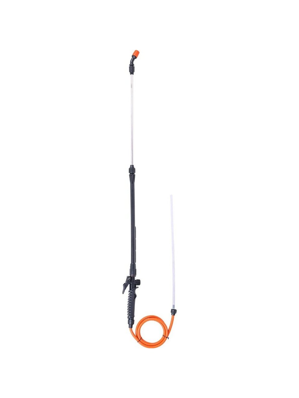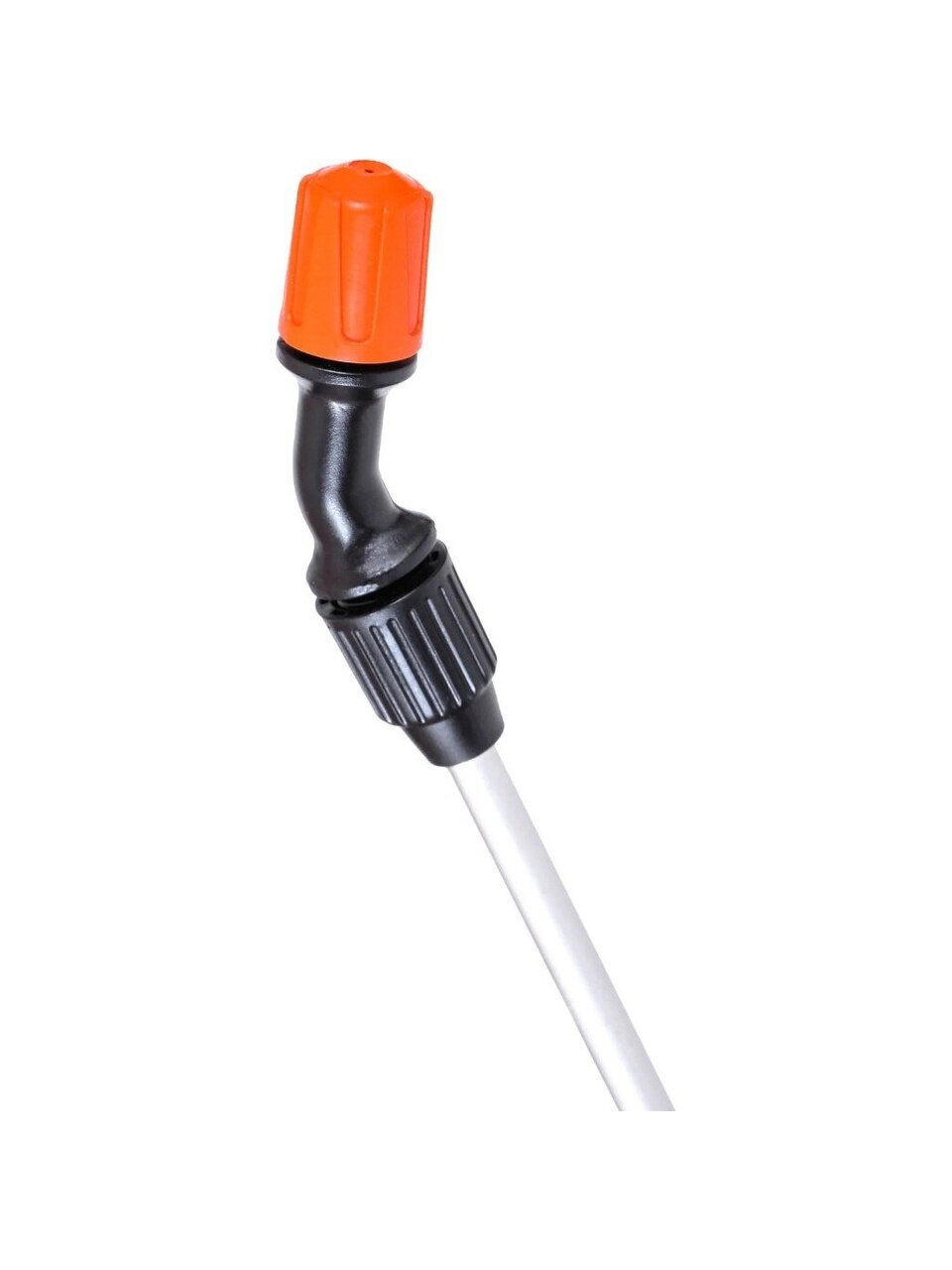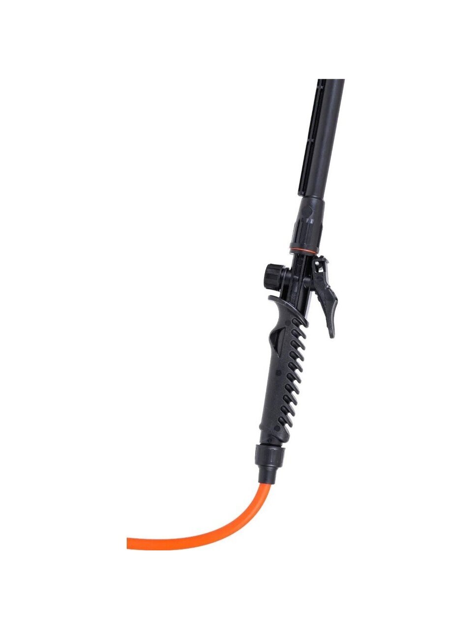 Брандспойт поставляется в частично разобранном виде. Соберите брандспойт, прикрутив к ручке с одной стороны штангу, а с другой – гибкий шланг, идущие в комплекте. Затем в отверстие с наружной резьбой на бачке опрыскивателя вставьте заборную трубку. При необходимости обрежьте заборную трубку до нужной длины. Наверните гайку шланга на резьбу до упора от руки, не применяя инструментов.