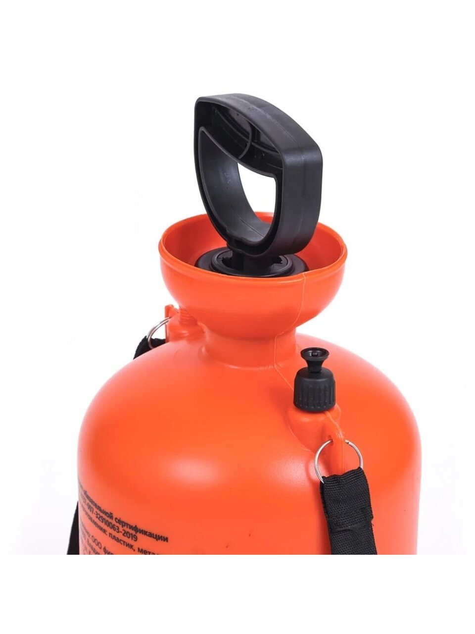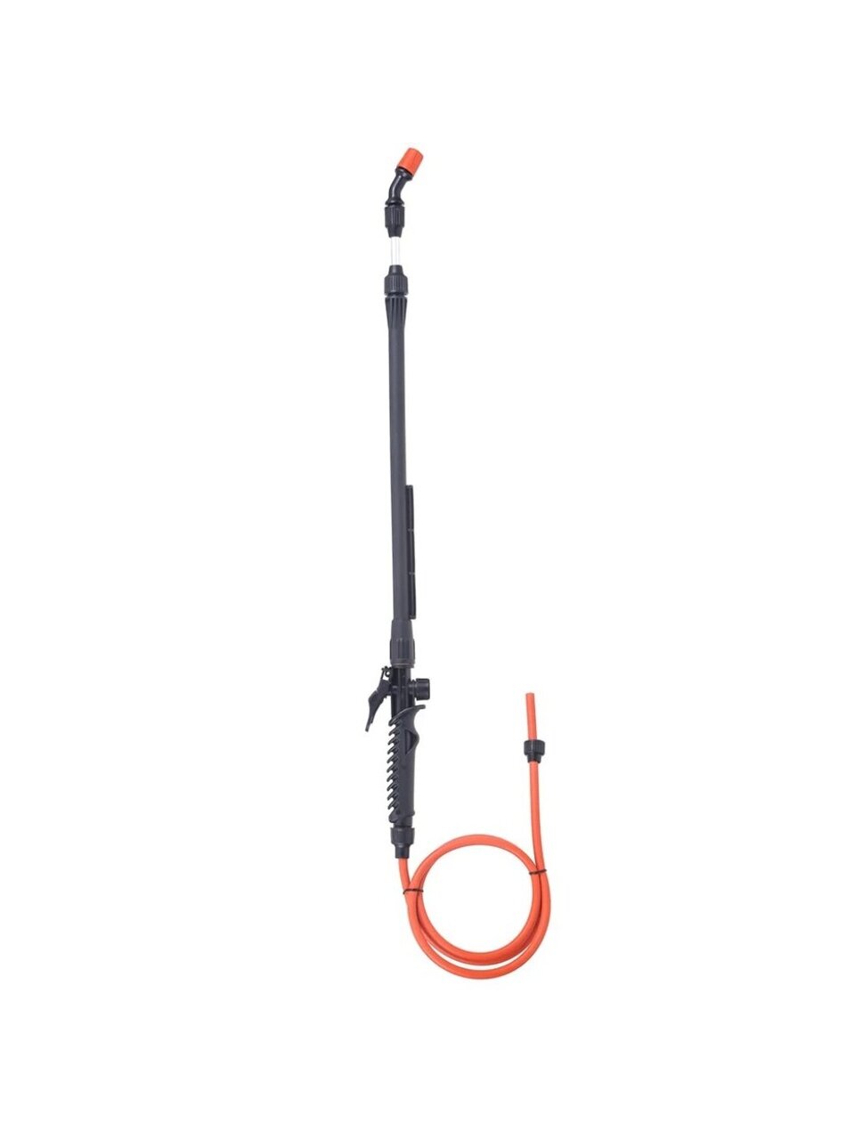 Мерная шкала на баке показывает остаток содержимого. Предохранительный клапан срабатывает при избыточном давлении, что обеспечивает безопасность в процессе эксплуатации опрыскивателя. Телескопический брандспойт позволяет заботится о растениях разной высоты. Регулировка струи на брандспойте даёт возможность использовать опрыскиватель как для защиты растений от вредителей, так и для полива. Наплечный ремень поставляется в комплекте.