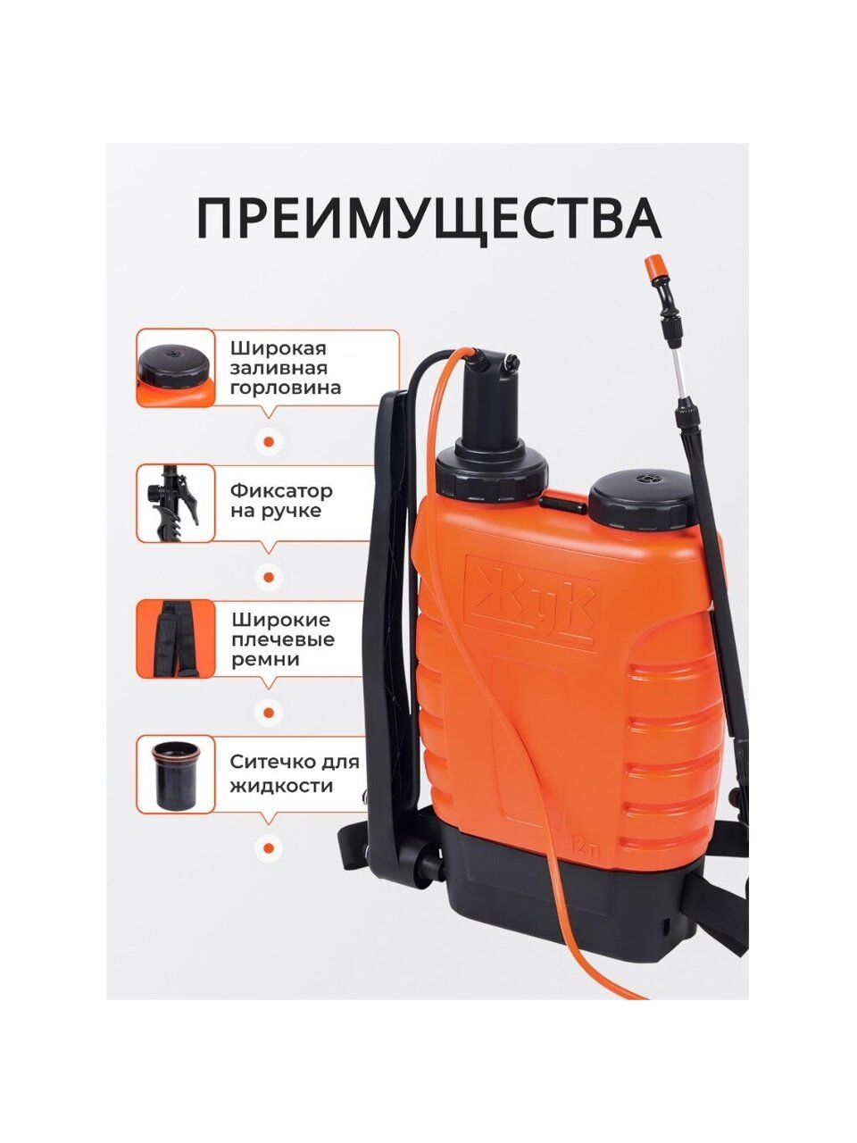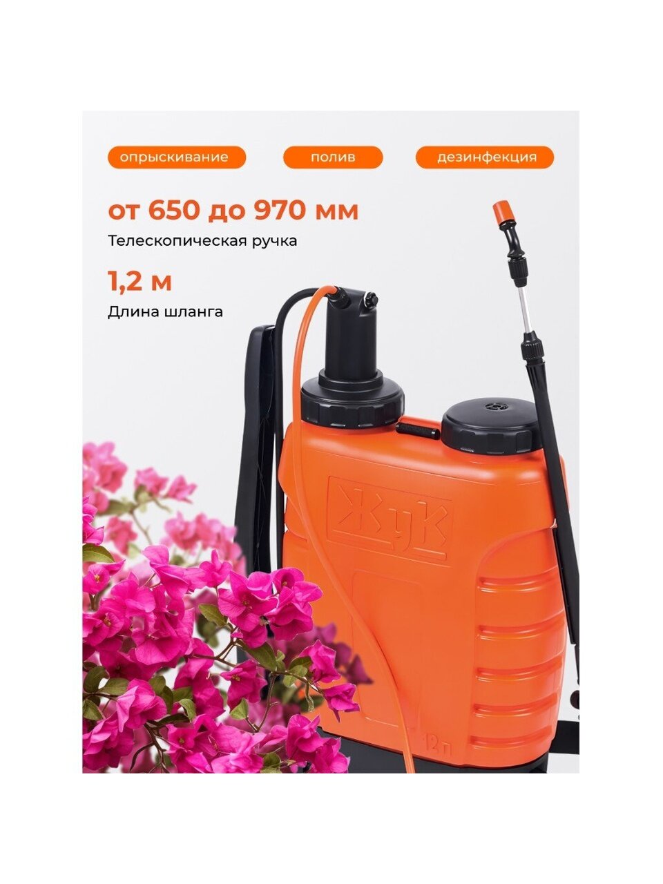 Надёжный садовый опрыскиватель Жук ОГ-112 позволит Вам с лёгкостью справиться с такими сельскохозяйственными задачами, как опрыскивание, подкормка и орошение растений. Кроме того, он подойдет для мытья стен, окон или дезинфекции помещения. Работать с опрыскивателем Жук невероятно комфортно: мерная шкала на баке покажет остаток содержимого, а наплечный ремень позаботится, чтобы Вам было удобно в процессе эксплуатации, и Ваша спина не испытывала лишней нагрузки. Вы сможете переоборудовать опрыскиватель под работу как правой, так и левой рукой.