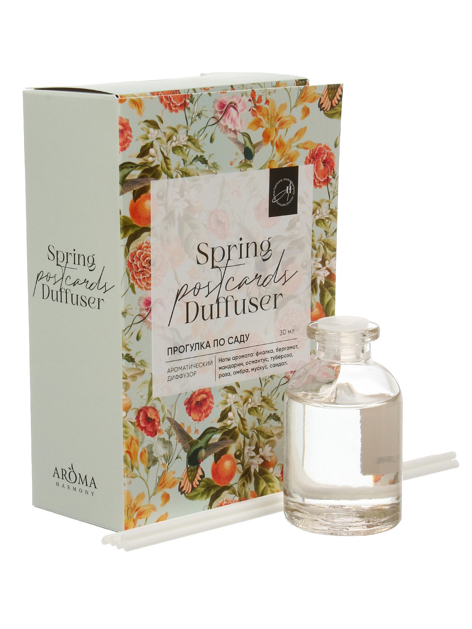 Диффузор-открытка Aroma Harmony 30 мл: свежесть сада для дома и подарка — быстро нейтрализует запахи, удобен для ванной и интерьера.