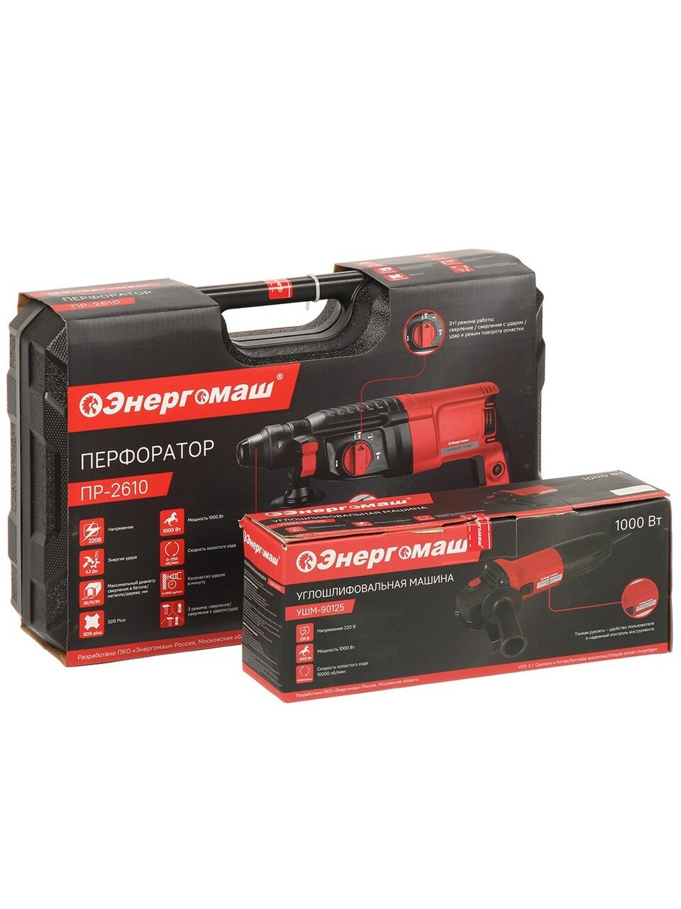 Преимущества набора: перфоратор Энергомаш 1000Вт + УШМ 125 мм