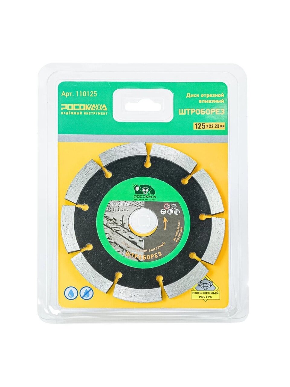 Диск отрезной алмазный по армированному бетону Росомаха ШТРОБОРЕЗ 125х22.2х6.4 мм — надежный инструмент для профессионального и бытового использования при работе с армированным бетоном. Высокая производительность и точность реза обеспечиваются сегментной кромкой и девятью прочными зубьями, что особенно важно при выполнении сложных задач в ремонте и строительстве. Благодаря диаметру 125 мм и толщине 6,4 мм диск идеально подходит для штробления, создания технологических каналов, а также для резки армированных конструкций без риска перегрева — сухой рез позволяет работать быстро и эффективно без использования воды. Использование современного алмазного напыления гарантирует долгий срок службы и стабильное качество реза даже при интенсивной эксплуатации. Посадочный диаметр 22.2 мм обеспечивает совместимость с большинством популярных моделей штроборезов и болгарок, что делает диск универсальным решением для домашней мастерской или строительной площадки.