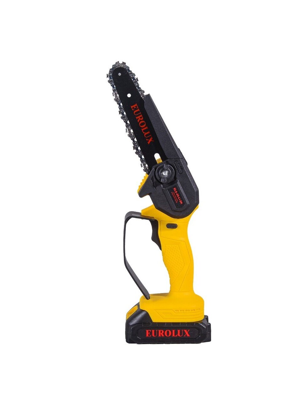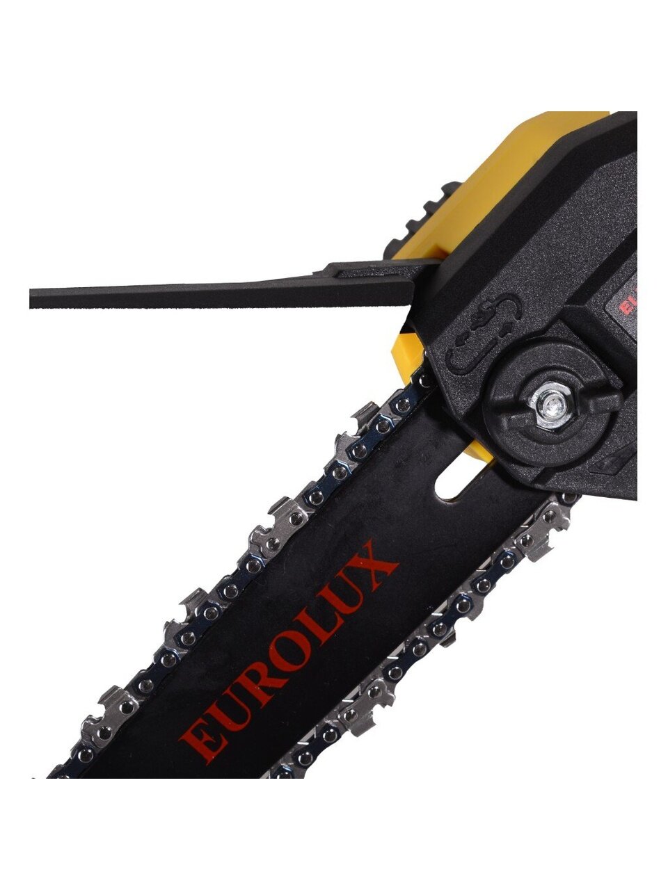 Вы можете приобрести «Пила цепная электрическая, аккумуляторная, Eurolux, длина шины 15 см, шаг цепи 1/4 дюйм, 36 звеньев, ELS-20-Li-2К, 20 В, 2АКБ 2Ач+ЗУ, 70/10/55» и другие товары в нашем интернет-магазине в Серпухове по низким ценам и с бесплатным самовывозом.
