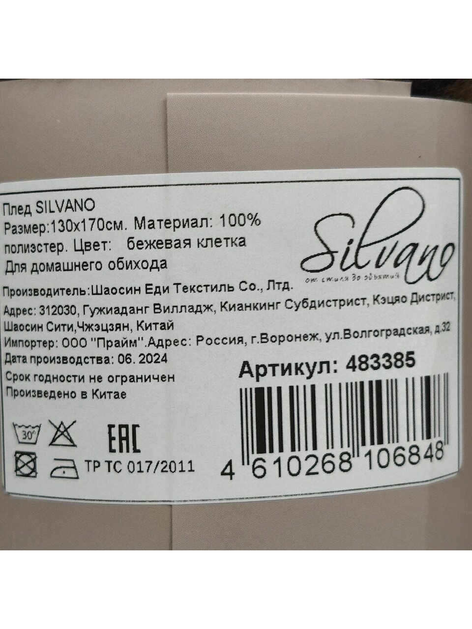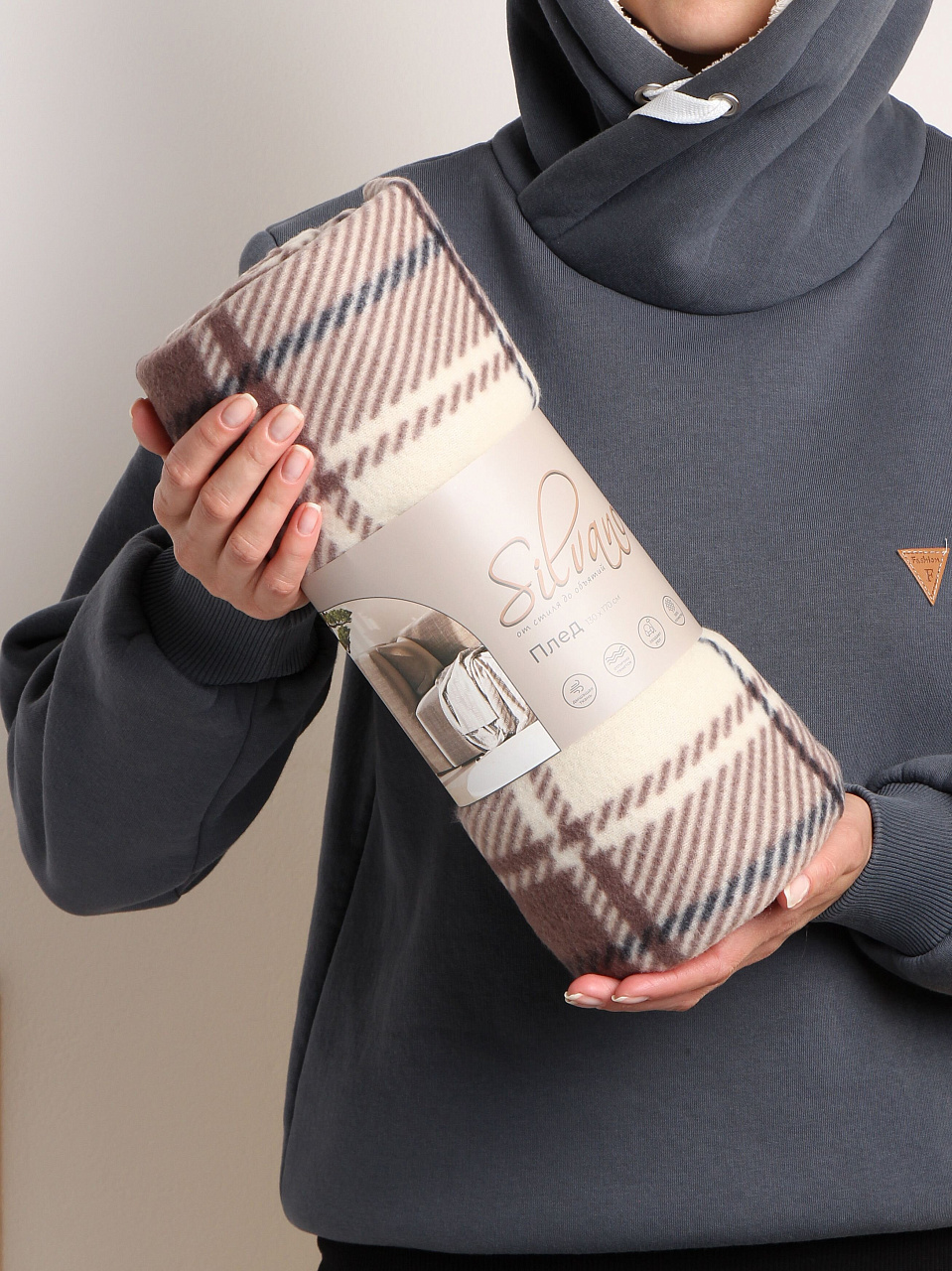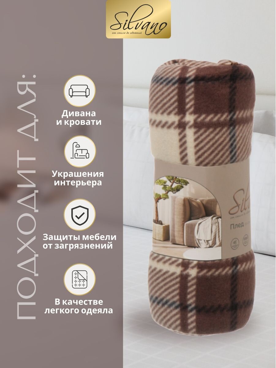 Плед 1.5-спальный Silvano, 130х170 см: уютный флис в бежевой клетке для дома, дачи и авто — тепло, комфорт и стиль по доступной цене.