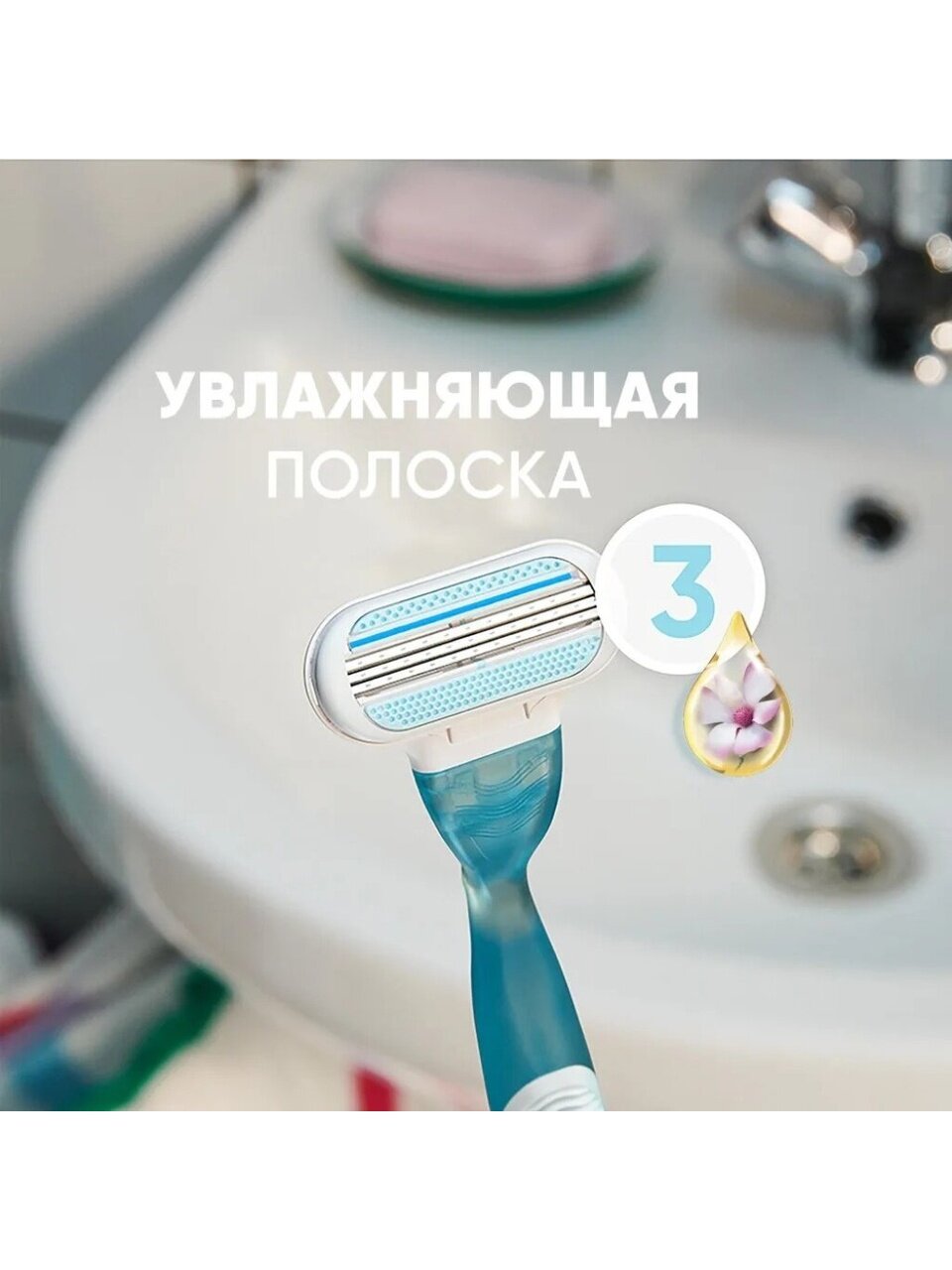 - Три острых лезвия станка обеспечивают более гладкое и чистое бритье одним движением.