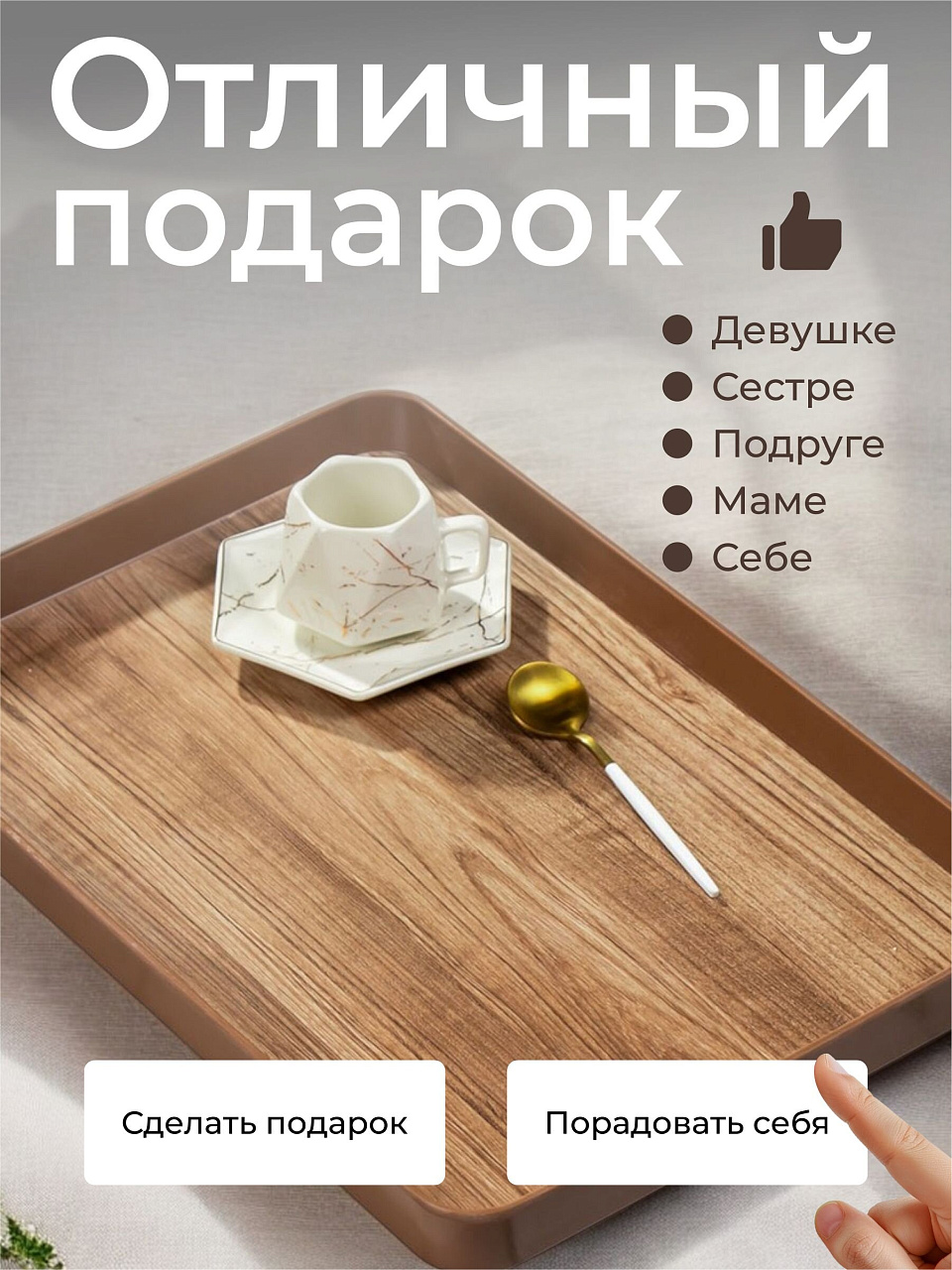Ищете, как использовать поднос для кофе или фруктов? Эта модель подходит для подачи завтрака в постель, сервировки на террасе, организации пространства на кухне. Подходит ли для посудомоечной машины? Да, материал рассчитан на регулярную мойку без потери цвета и формы.