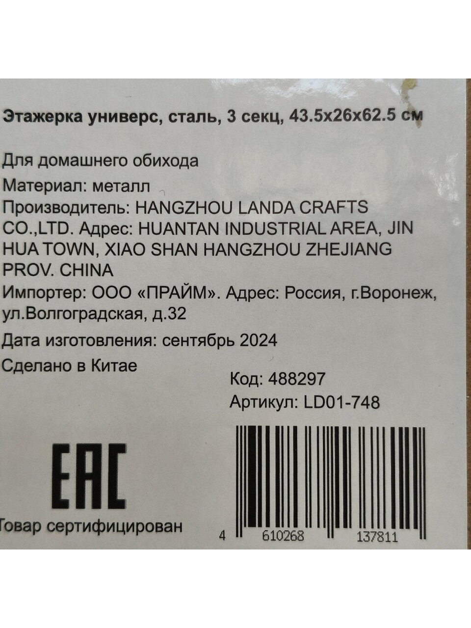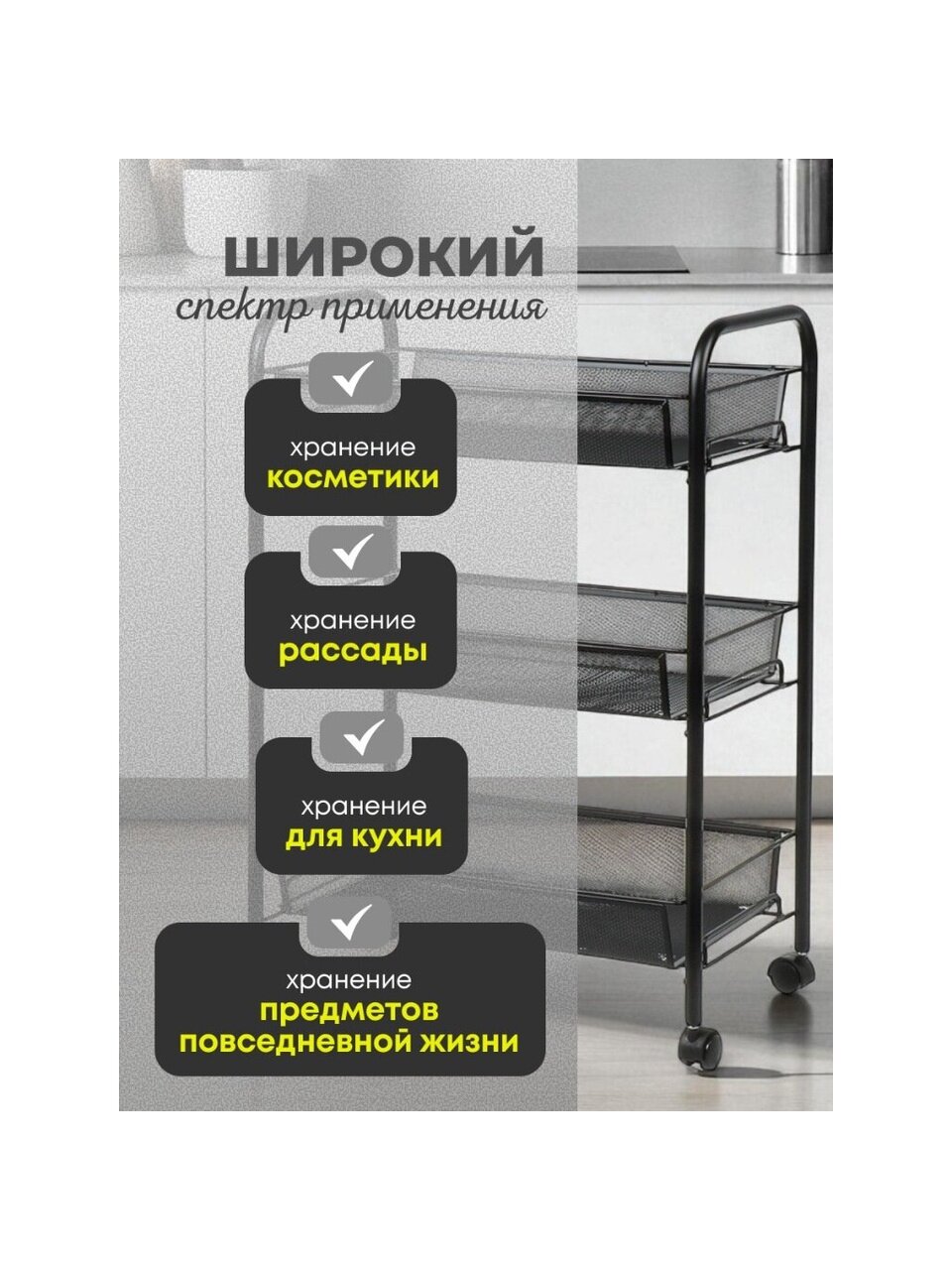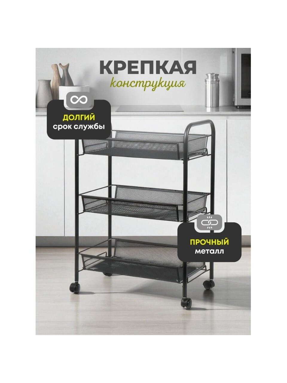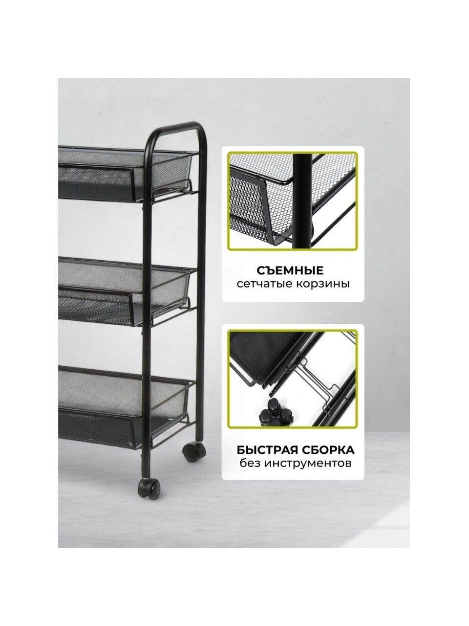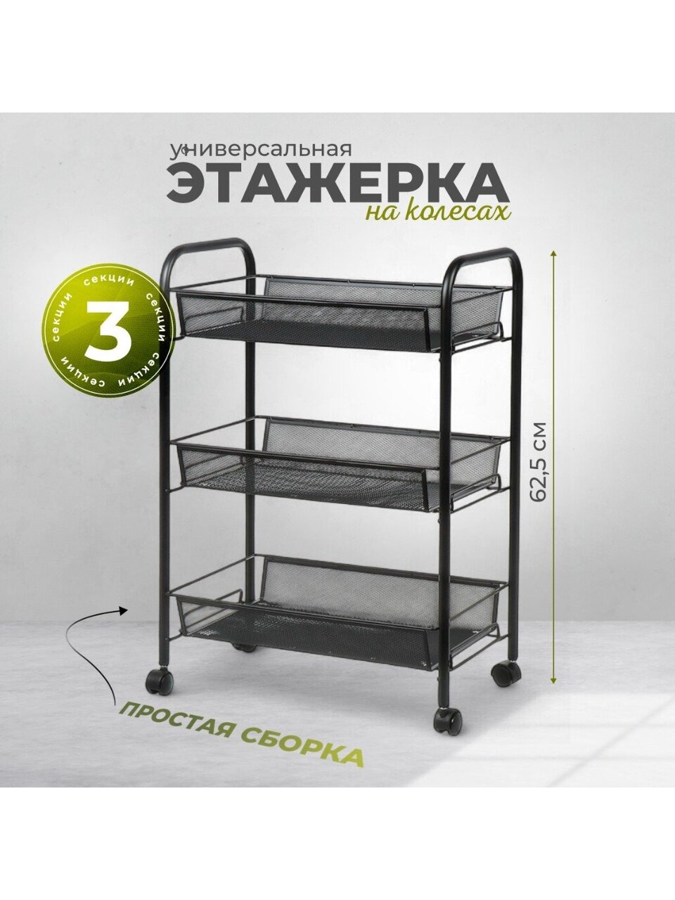 Вы можете приобрести «Этажерка универсальная, сталь, 3 секции, 43.5х26х62.5 см, на колесах, с мелкосетчатыми корзинами, черная, LD01-748» и другие товары в нашем интернет-магазине в Липецке по низким ценам и с бесплатным самовывозом.