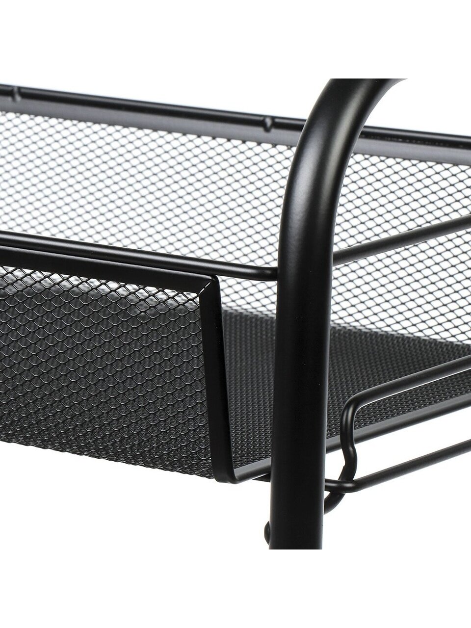 Этажерка выполнена в классическом черном цвете, что делает ее стильным и универсальным элементом интерьера. Она идеально впишется в любой стиль, будь то современный минимализм или уютная классика. Благодаря открытой конструкции и вентилируемым корзинам, вещи будут всегда в доступе и в порядке. Это прекрасное решение для хранения бытовых принадлежностей, документов, книг или даже кухонных аксессуаров.