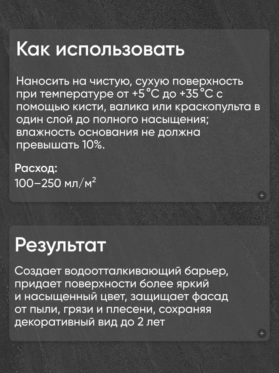 - Область применения состава: для крыши, для металлочерепицы, для профнастила, для стен, для строительных работ, для террас, для торцов, для фасадов, для цоколей, по бетону, по камню, по кирпичу, универсальная.