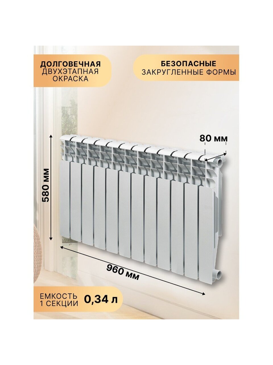 - Теплоотдача 1 секции: 120 Вт.