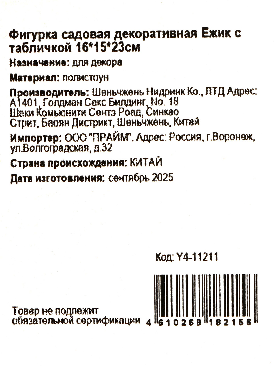 Фигурка садовая декоративная Ежик с табличкой, 16х15х23 см, полистоун, Y4-11211