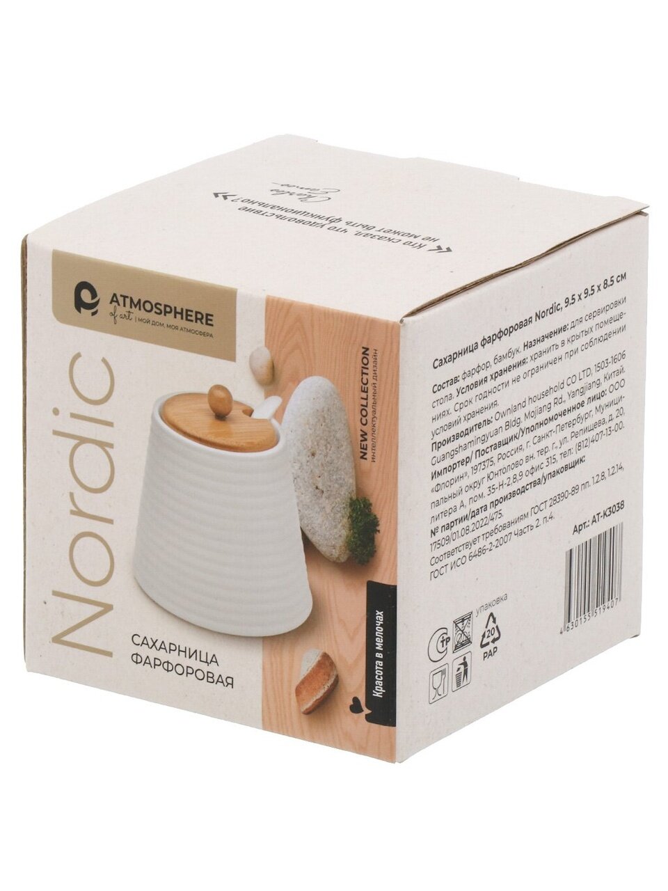 Вы можете приобрести «Сахарница 220 мл, фарфор, 9.5х9.5х8.5 см, Atmosphere, Nordic, AT-K3038» и другие товары в нашем интернет-магазине в Обнинске по низким ценам и с бесплатным самовывозом.
