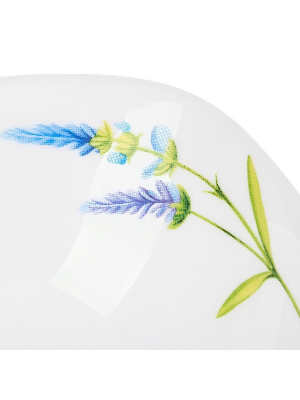 Квадратная форма, диаметр 14 см, высота 5 см, объём 0.4 л. Без крышки, без металлической подставки, выполнен из стеклокерамики с цветочным рисунком, подходит для СВЧ и посудомоечной машины.