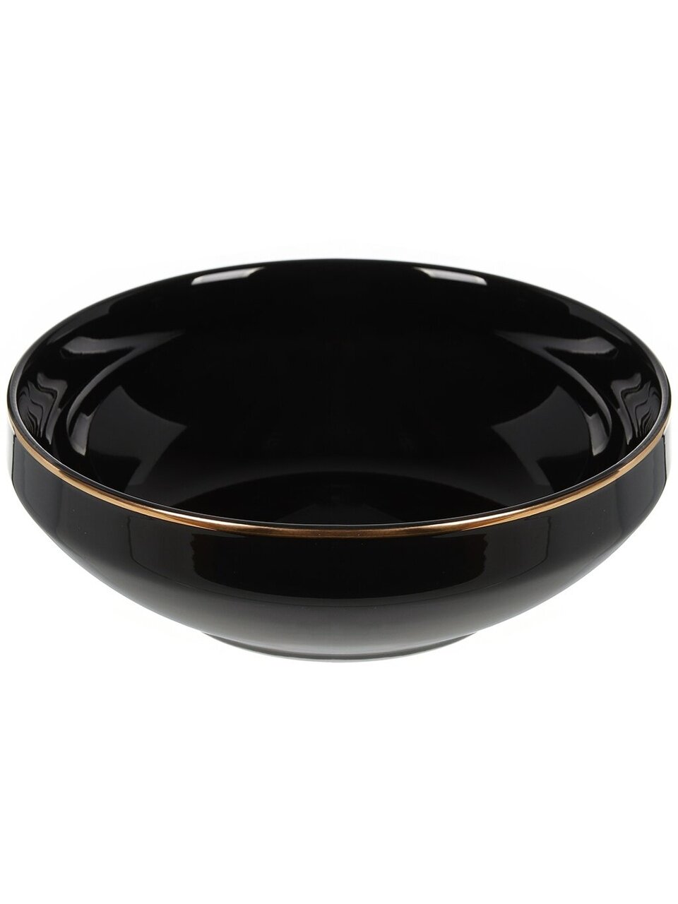 Салатник фарфор, круглый, 14х4.7 см, Black Gold, Domenik — это выбор для тех, кто ценит сочетание изысканности и практичности. Черная матовая поверхность с золотой каймой делает каждую сервировку особенной. Если вы ищете, какой салатник выбрать для подачи салатов, фруктов или закусок, обратите внимание на фарфоровую посуду: она сохраняет вкус и температуру блюда, не впитывает запахи, легко моется вручную.