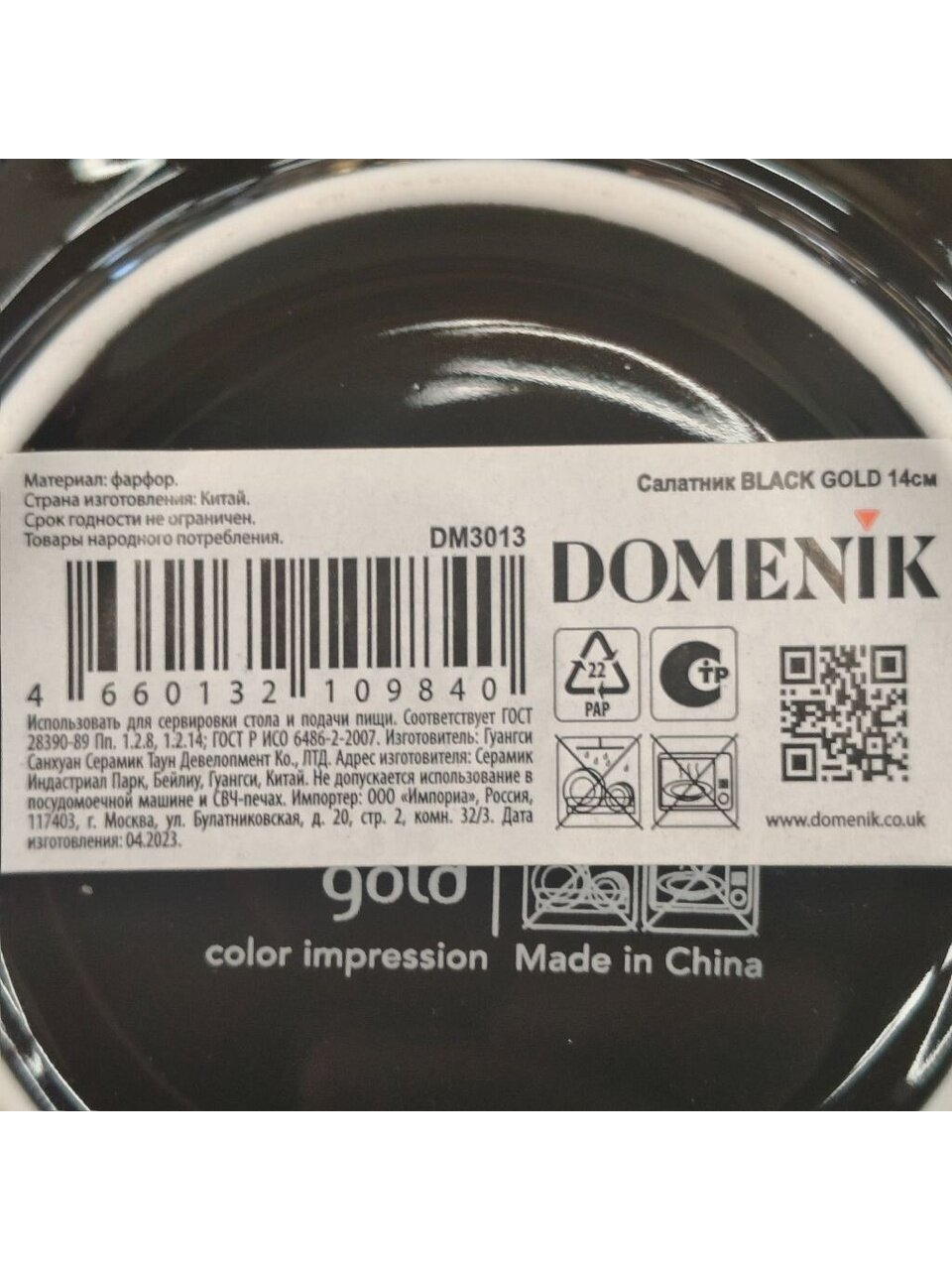 Вы можете приобрести «Салатник фарфор, круглый, 14х4.7 см, Black Gold, Domenik, DM3013-1» и другие товары в нашем интернет-магазине в Орле по низким ценам и с бесплатным самовывозом.