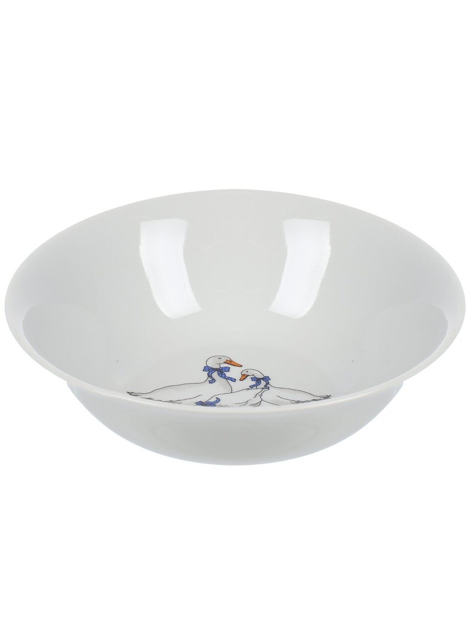 Салатник из фарфора «Гуси новые» от Дулевского фарфора — это не просто посуда, а элемент сервировки, который добавит изысканности вашему столу. Белый фарфор с милым рисунком гусей идеально вписывается в современный и классический интерьер кухни. Благодаря округлой форме и диаметру 18 см, салатник удобен для подачи разных блюд: от овощных салатов до фруктовых миксов.